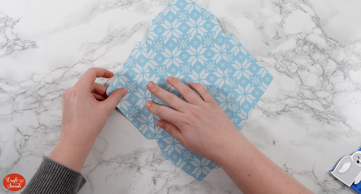 Stick three of the flaps together. Leave the fourth one unstuck so you can put your card inside!