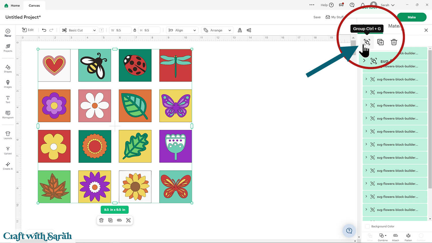 Select the file in the “01 Cricut Version” subfolder called svg-01-spring-block-builder-craftwithsarah.svg