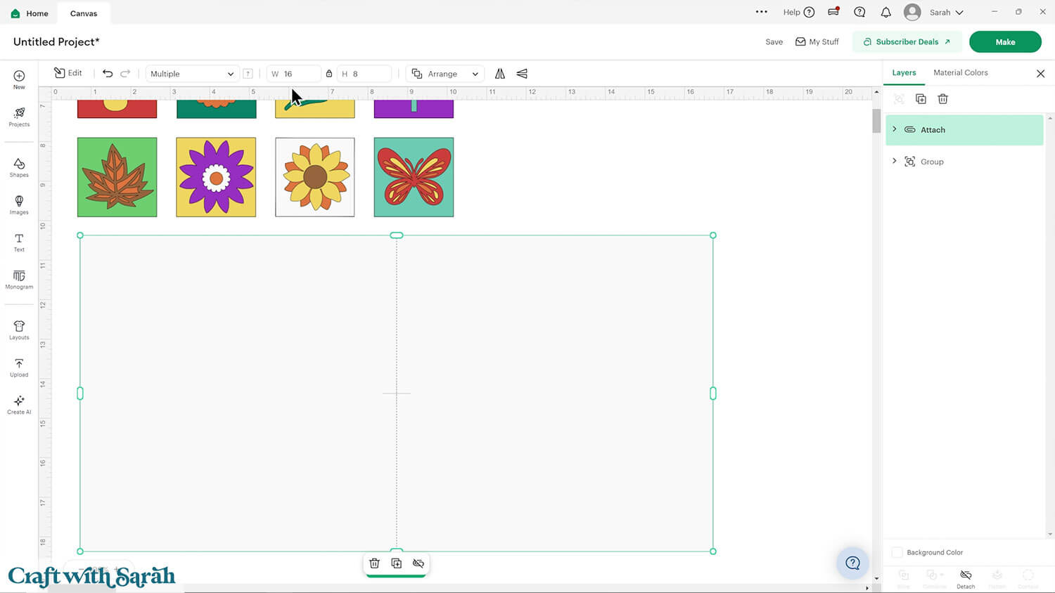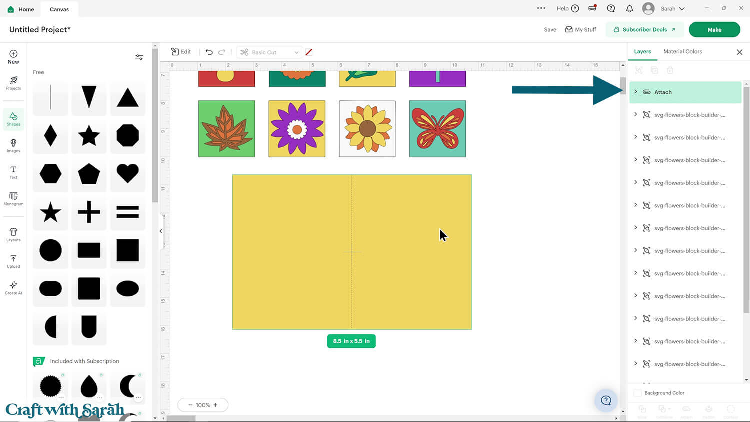 Then with the card and score line selected, press “Attach”. This tells the Cricut to do the scoring in that exact position on the card.