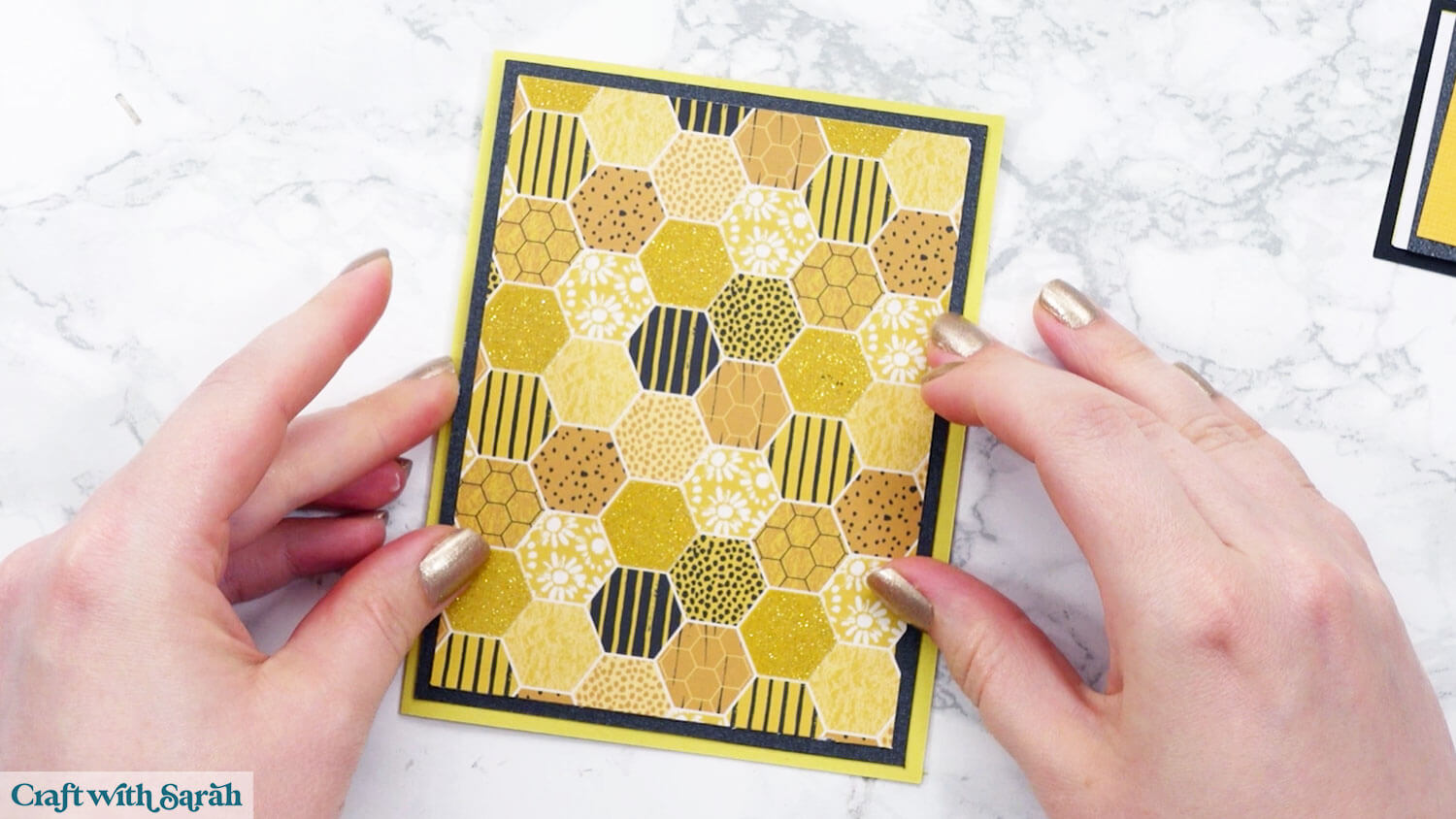 For the third card design, see how to rotate and cut off parts of the blocks for an unusual but striking appearance.