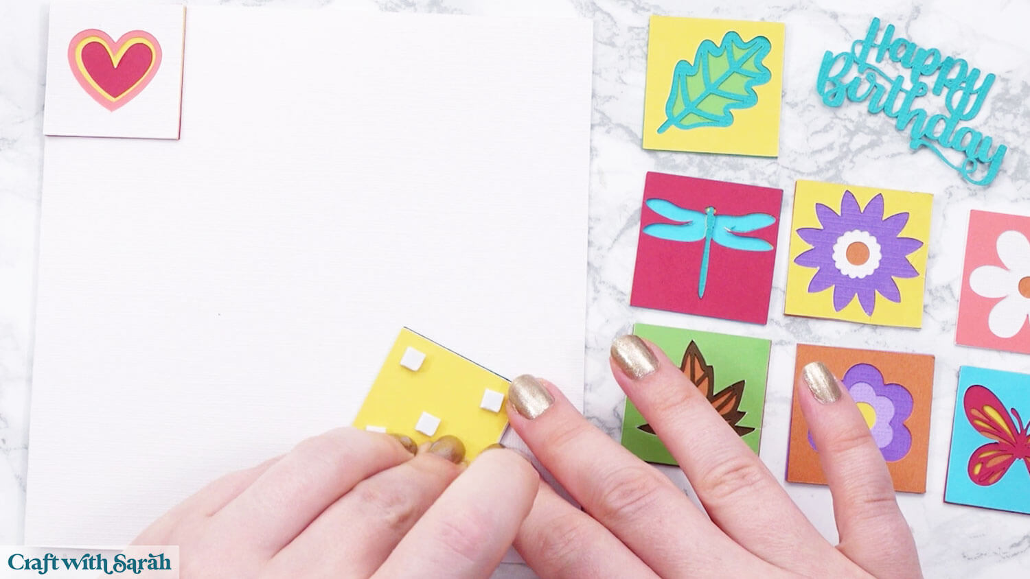 Use glue or foam squares to attach the block (or blocks if you have multiple) to your card.
