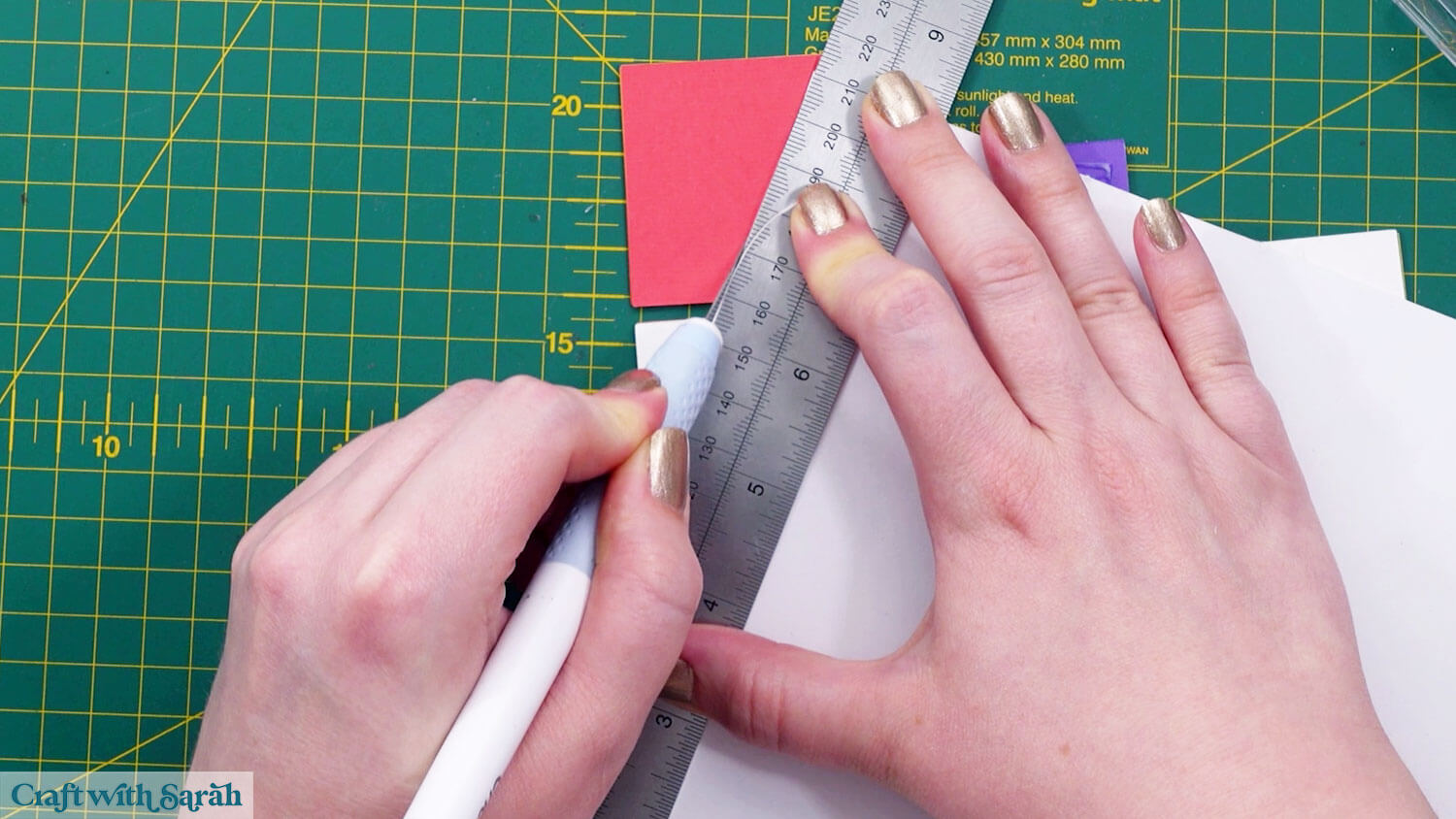 We will be cutting them as full squares and then using scissors or a craft knife to cut the excess of once the card is made.