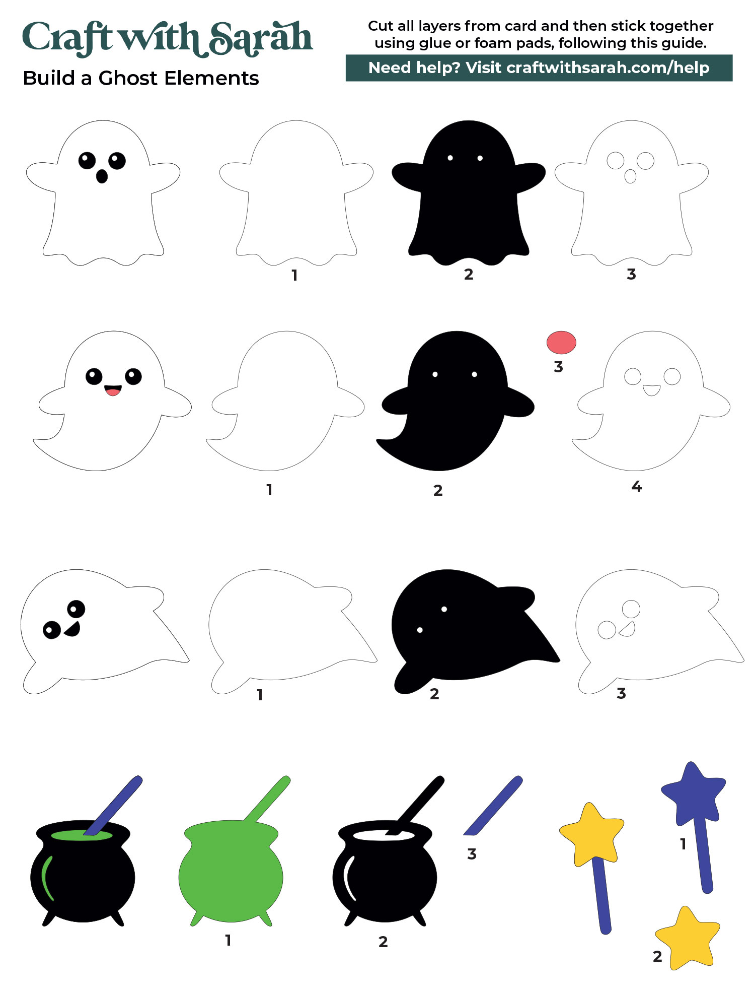 If magnets aren’t your style, you can use the ghosts for layered cardstock designs