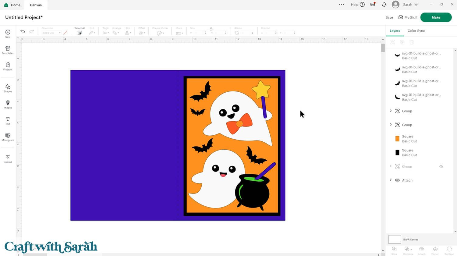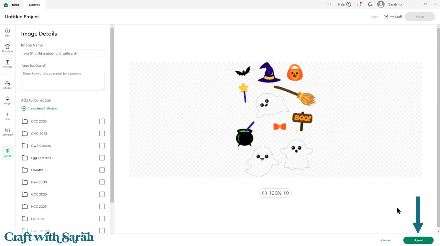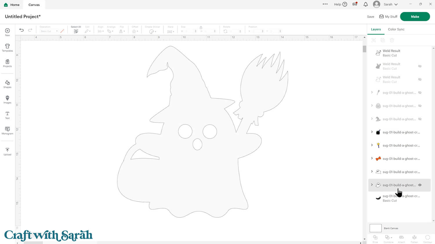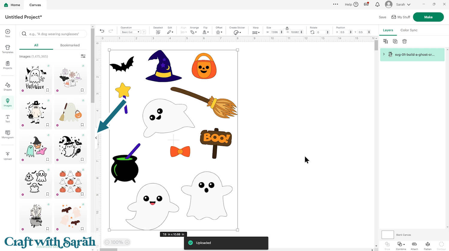 Upload the file in the “01 Cricut Version” subfolder called svg-01-build-a-ghost-craftwithsarah.svg