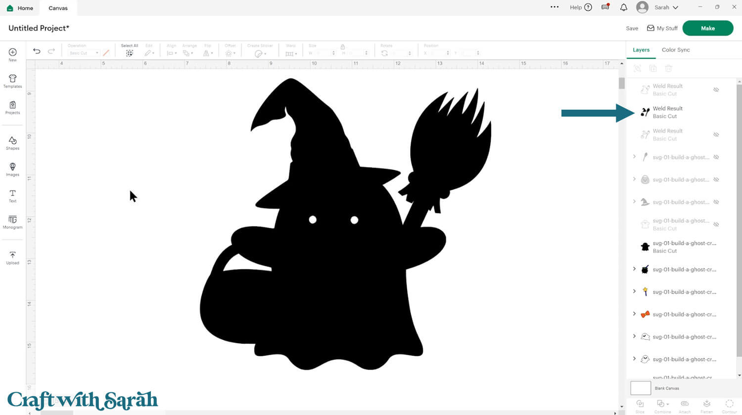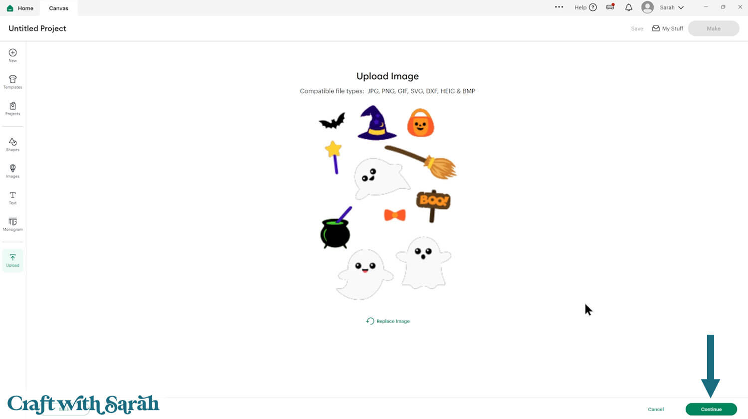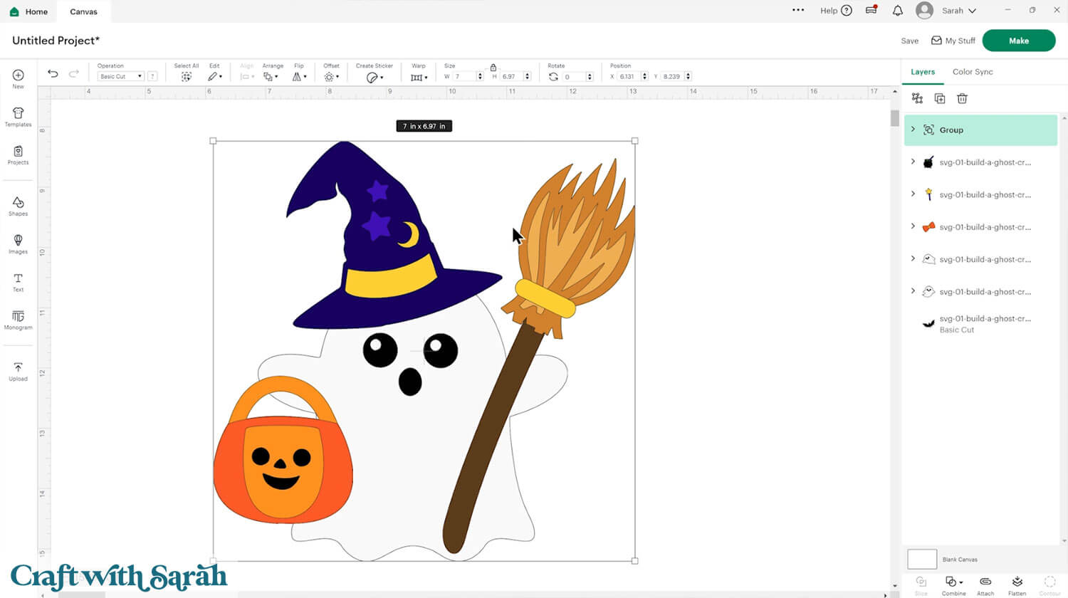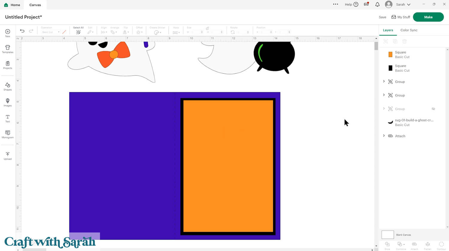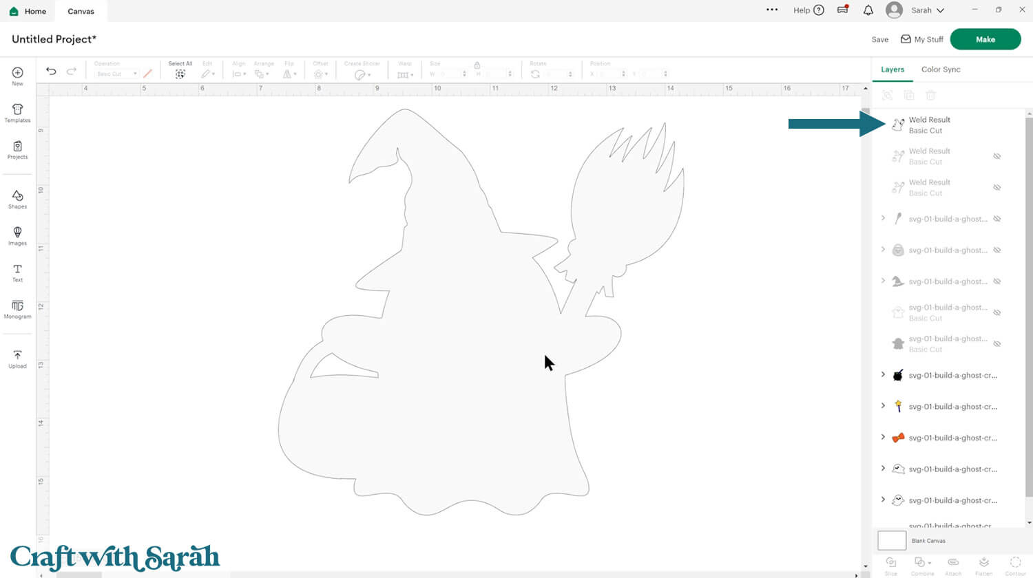 Upload the file in the “01 Cricut Version” subfolder called svg-01-build-a-ghost-craftwithsarah.svg