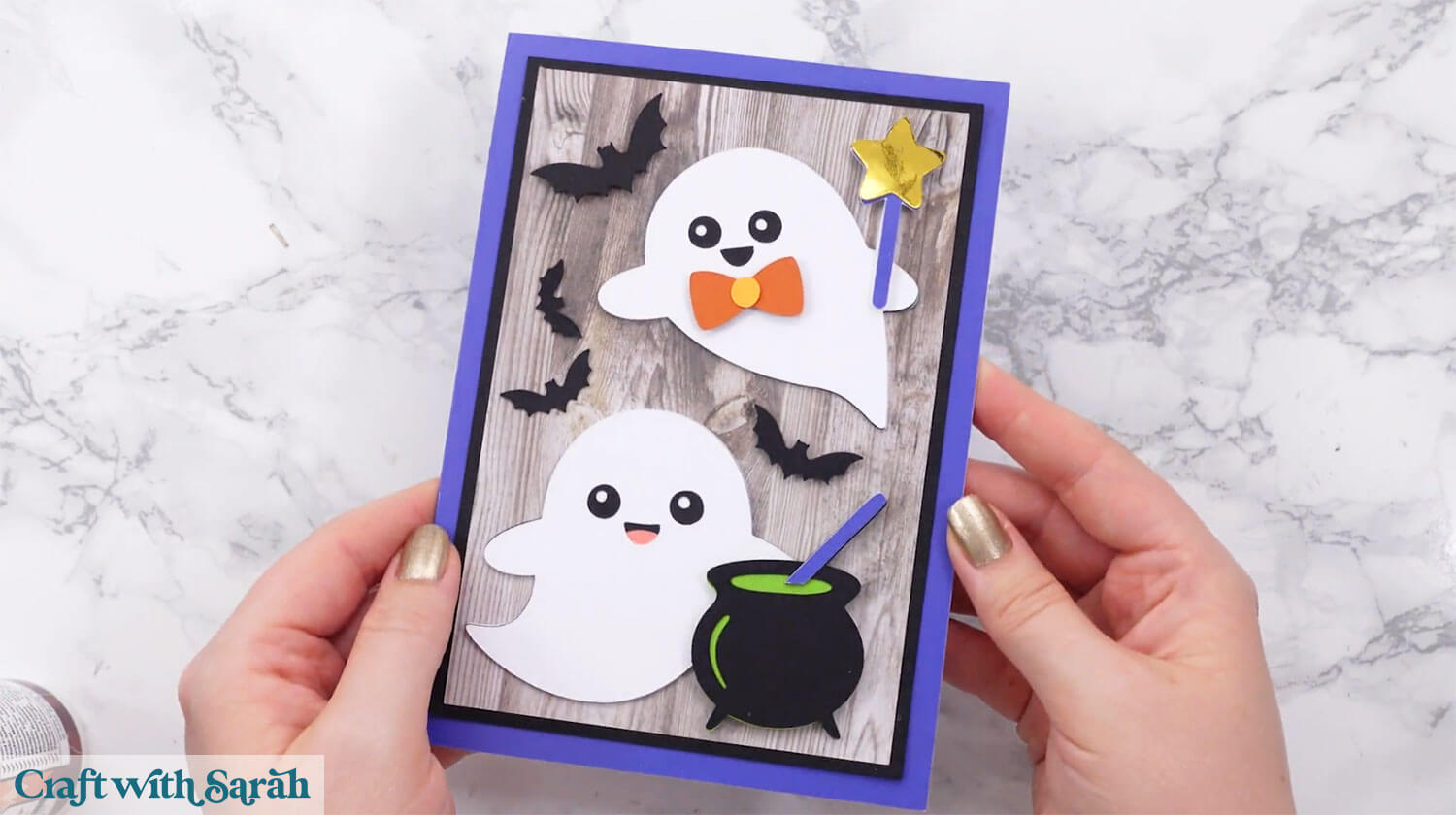 You can even add little bats or stars around the ghosts to fill in the empty spaces and bring the whole card together.