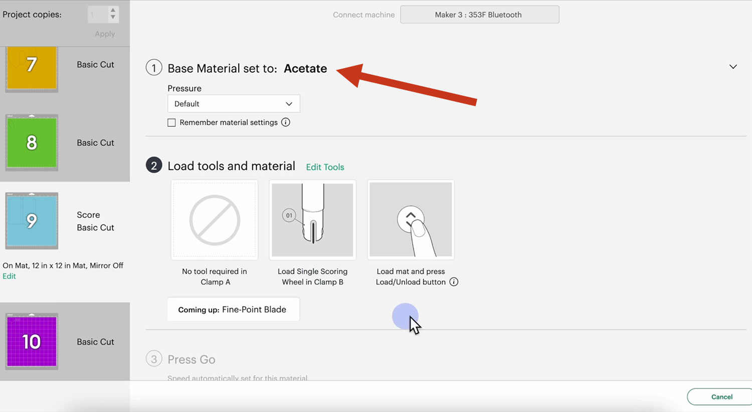 Select your scoring wheel or stylus when prompted. Click edit tools to change it from wheel to stylus if you need to.