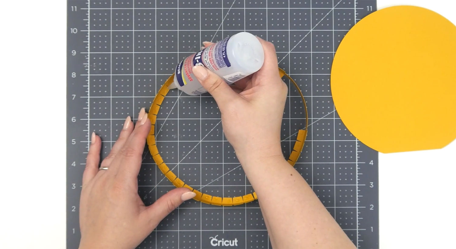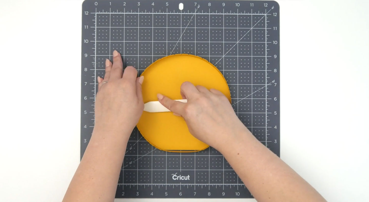 Stick the yellow circle on top. Use a bone folder or similar to make sure it’s really well stuck.