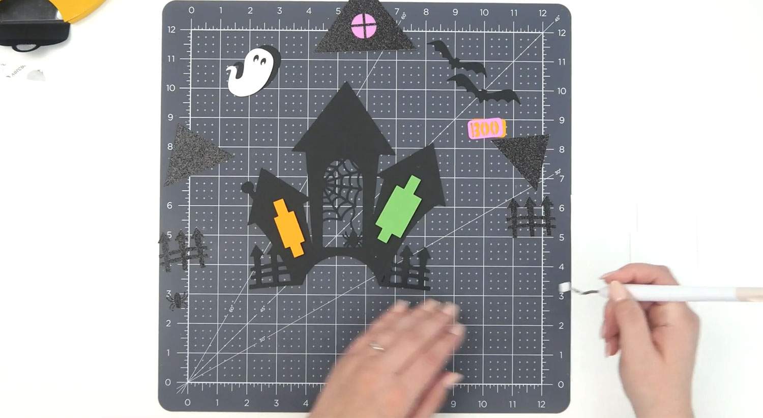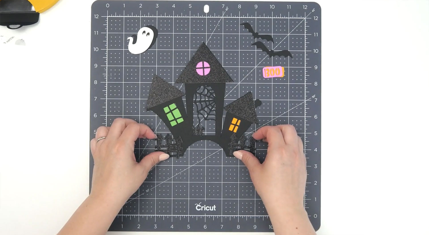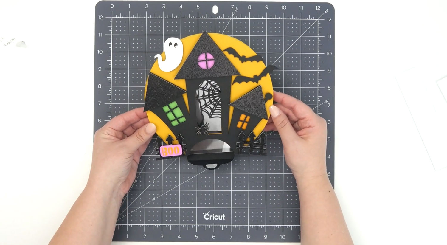 Keep your tape/glue on the outside edges so you don’t see it through the little window of the haunted house.