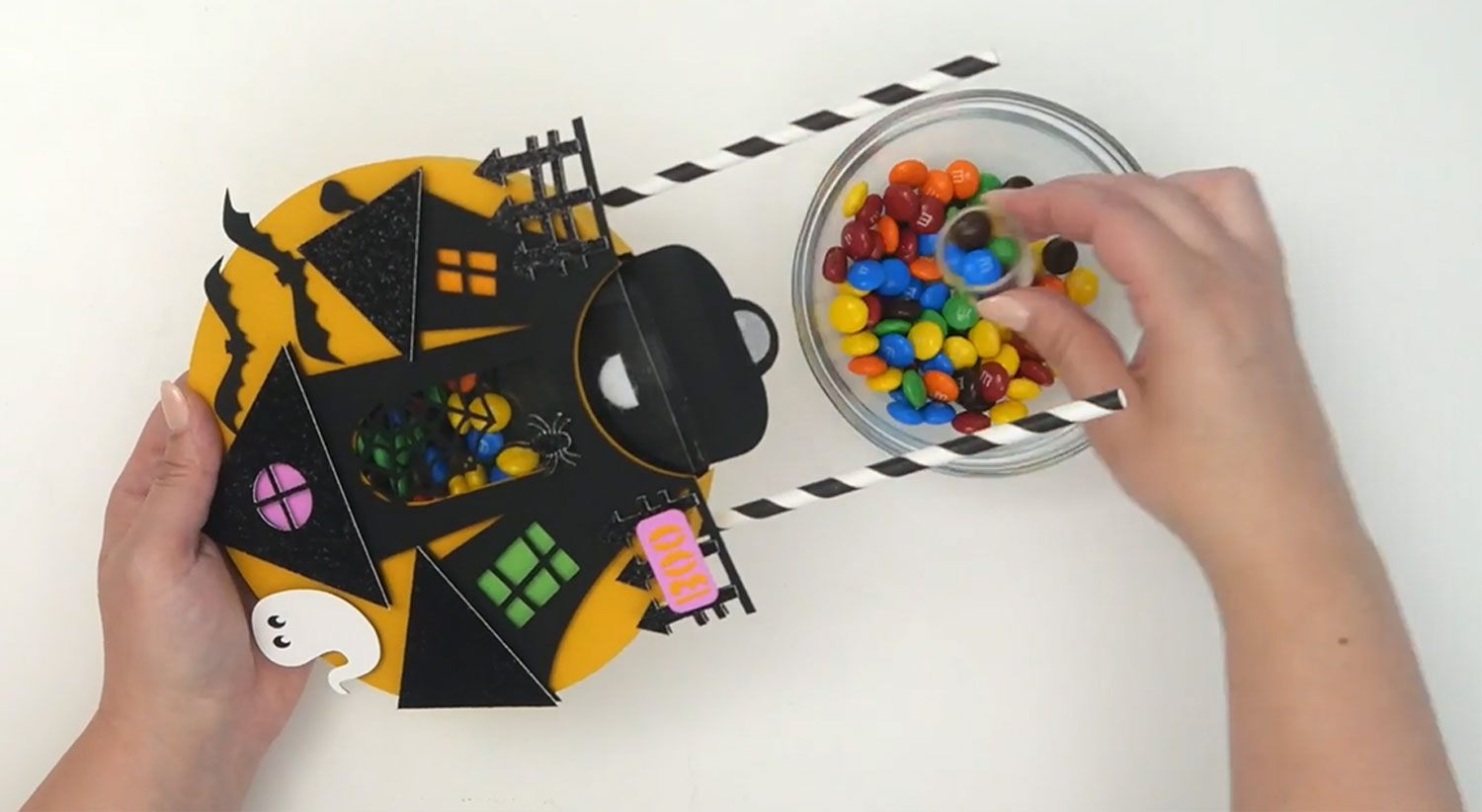 Now your Haunted House Candy Shaker Cake Topper is finished! That means you can eat up the remaining candy. Yay!!