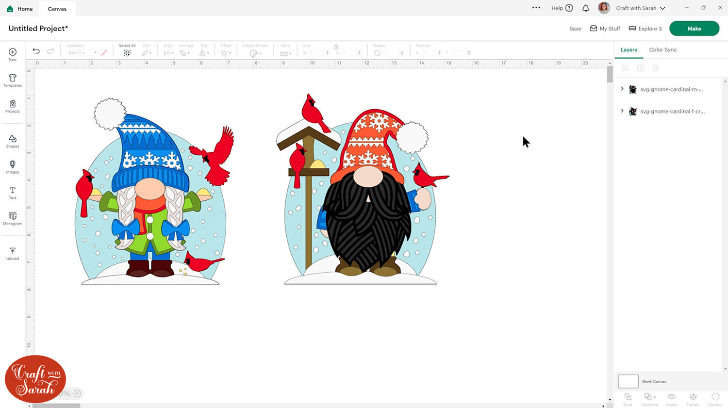 The male and female gnomes are separate SVG files, so you will need to upload two files if you want to make both gnomes.