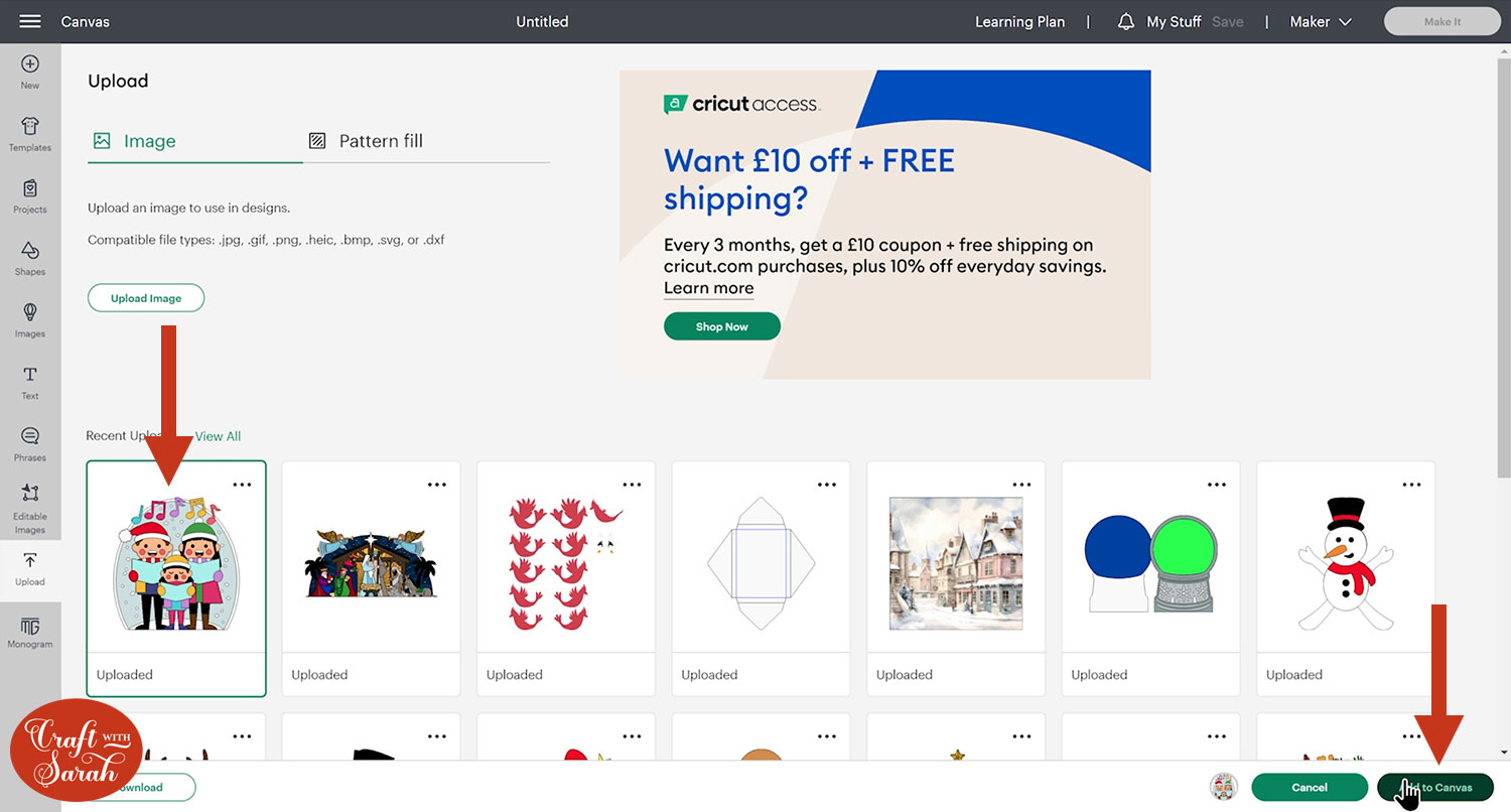 After uploading, the design will show in your “Recently Uploaded Images”.