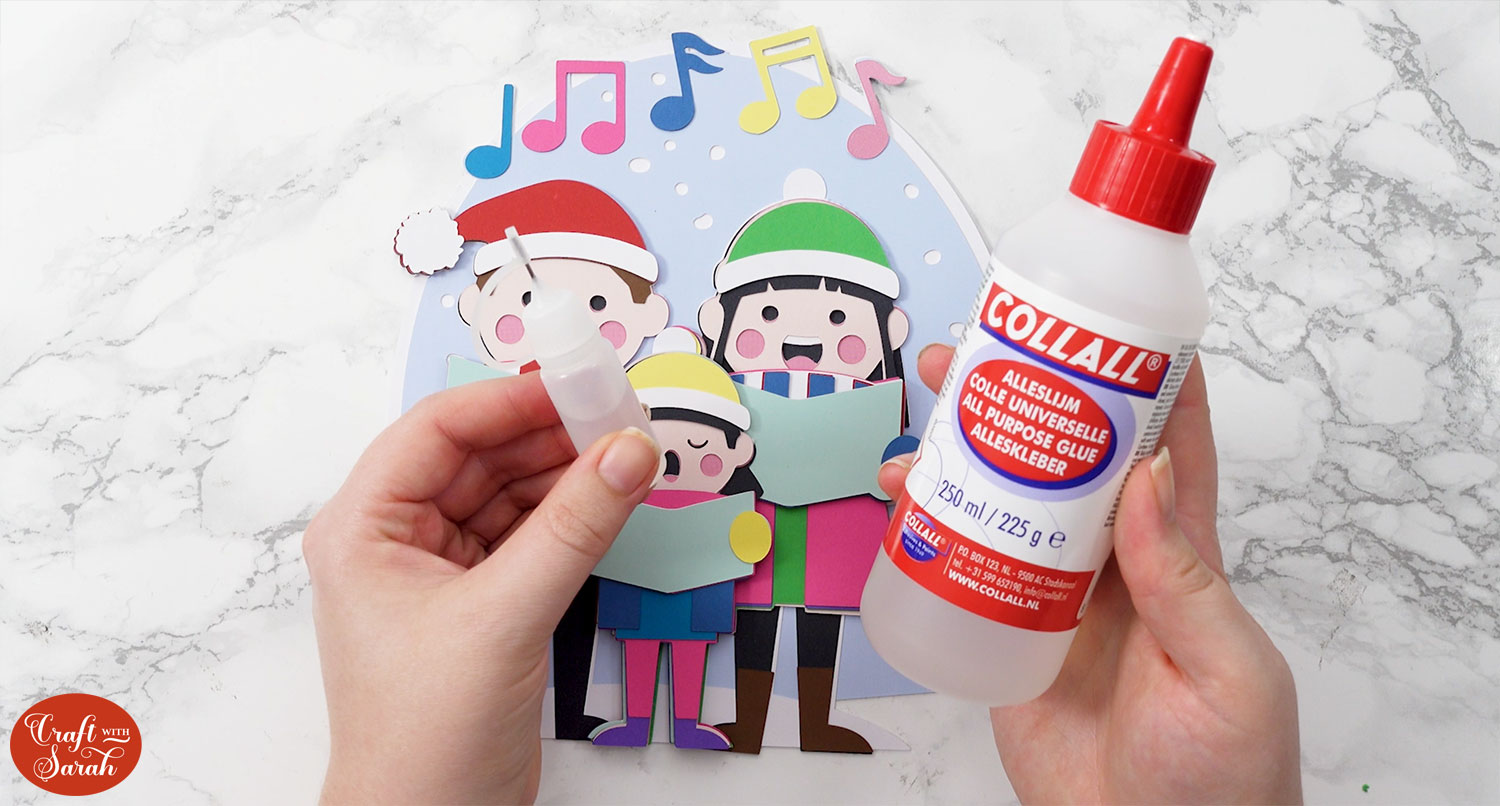 After sticking all the pieces of card together, you’ll have a lovely trio of carol singers all finished and ready to start sharing their festive tunes with the world!