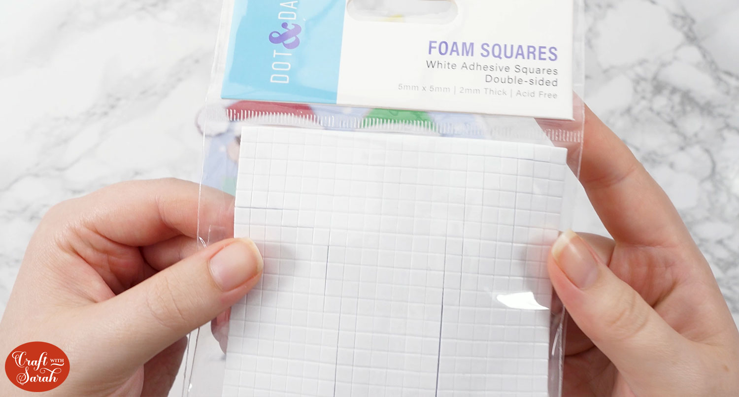 The foam pads that I use are from “Dot & Dab”, but any foam squares will work. If yours are big then you may need to cut them smaller with scissors to fit inside the edges of the layers.