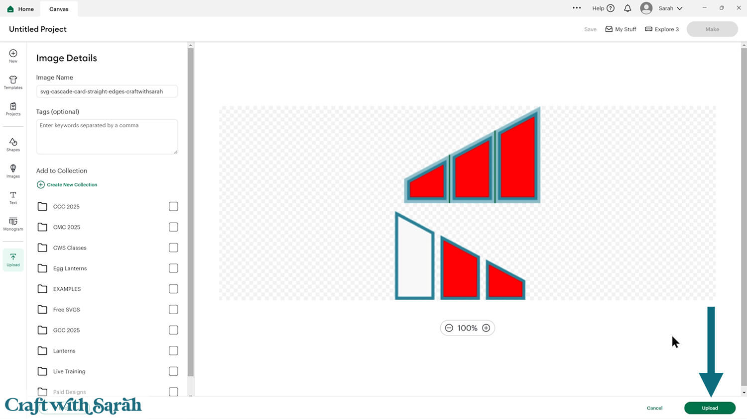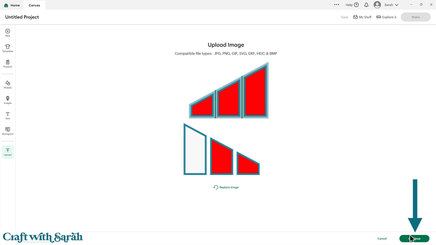 If you are using Cricut Design Space, start a new project and then click the “Upload” button on the left of the screen.