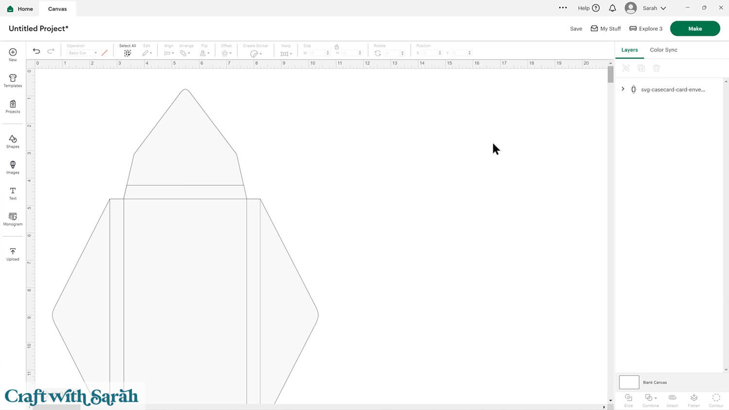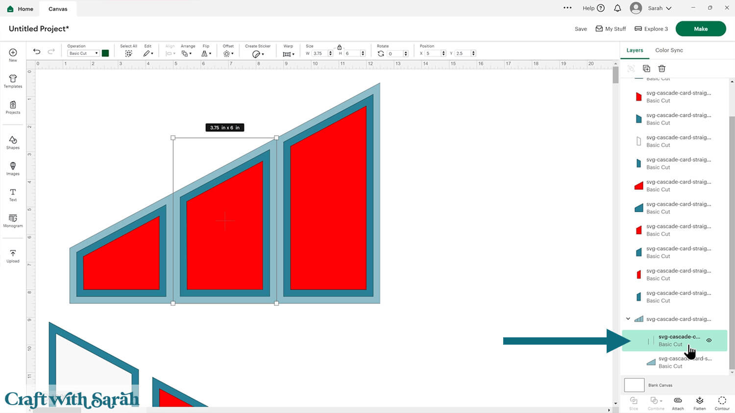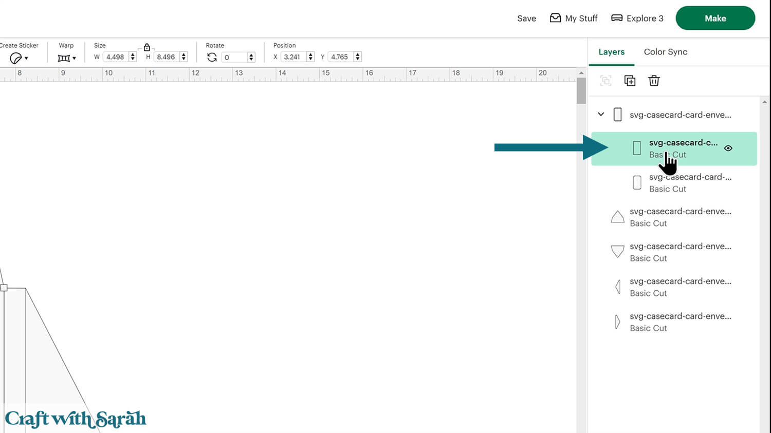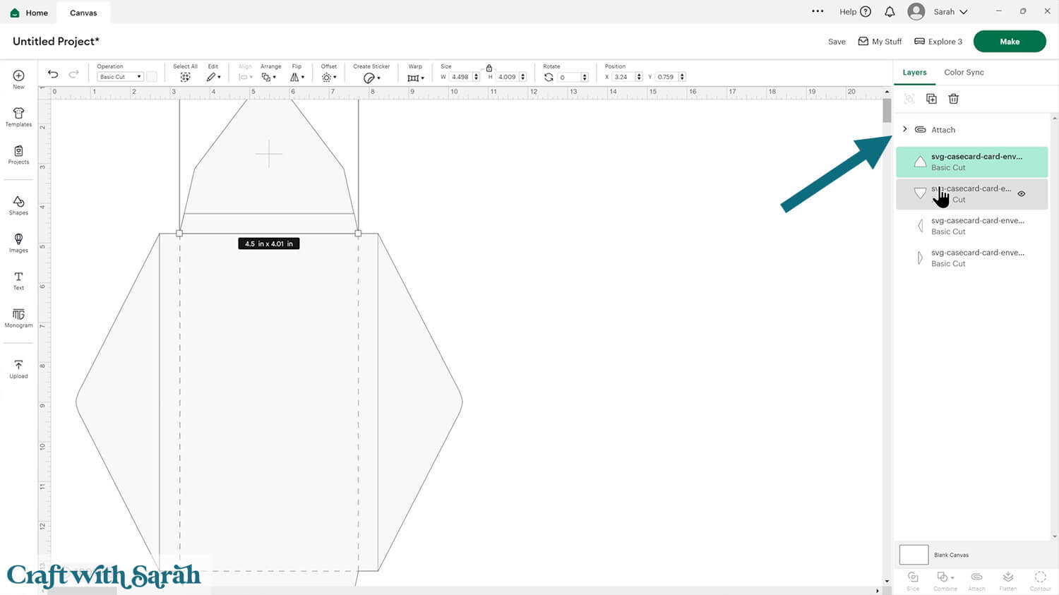 Cut the envelope. You can move the layers around in Design Space to fit them all onto one 12×12 sheet of card.