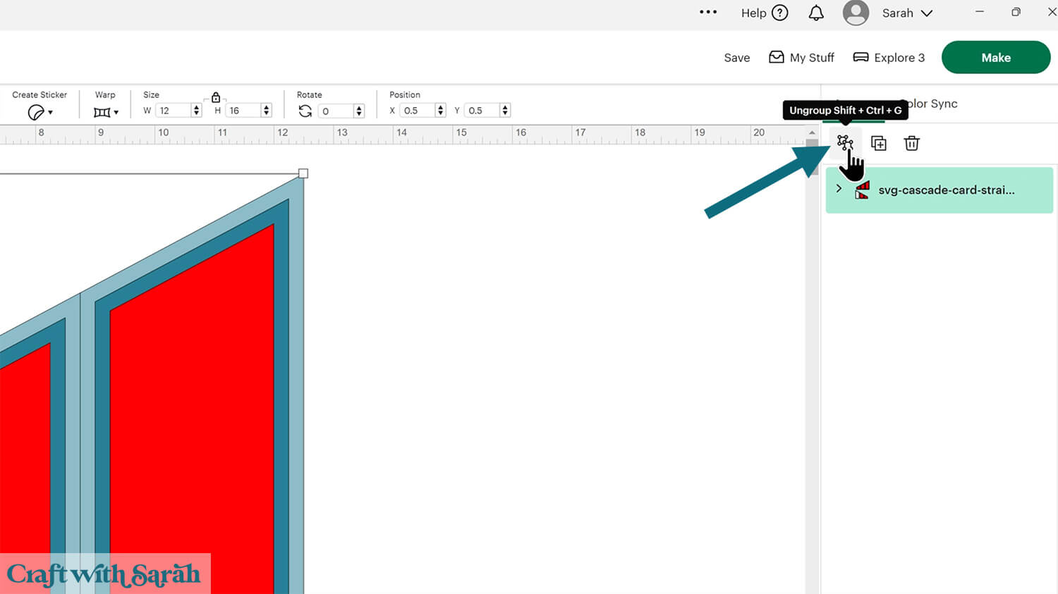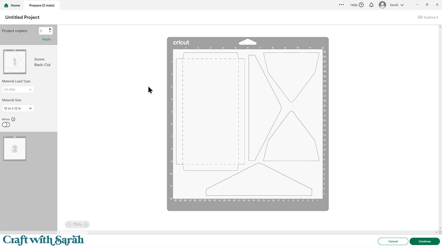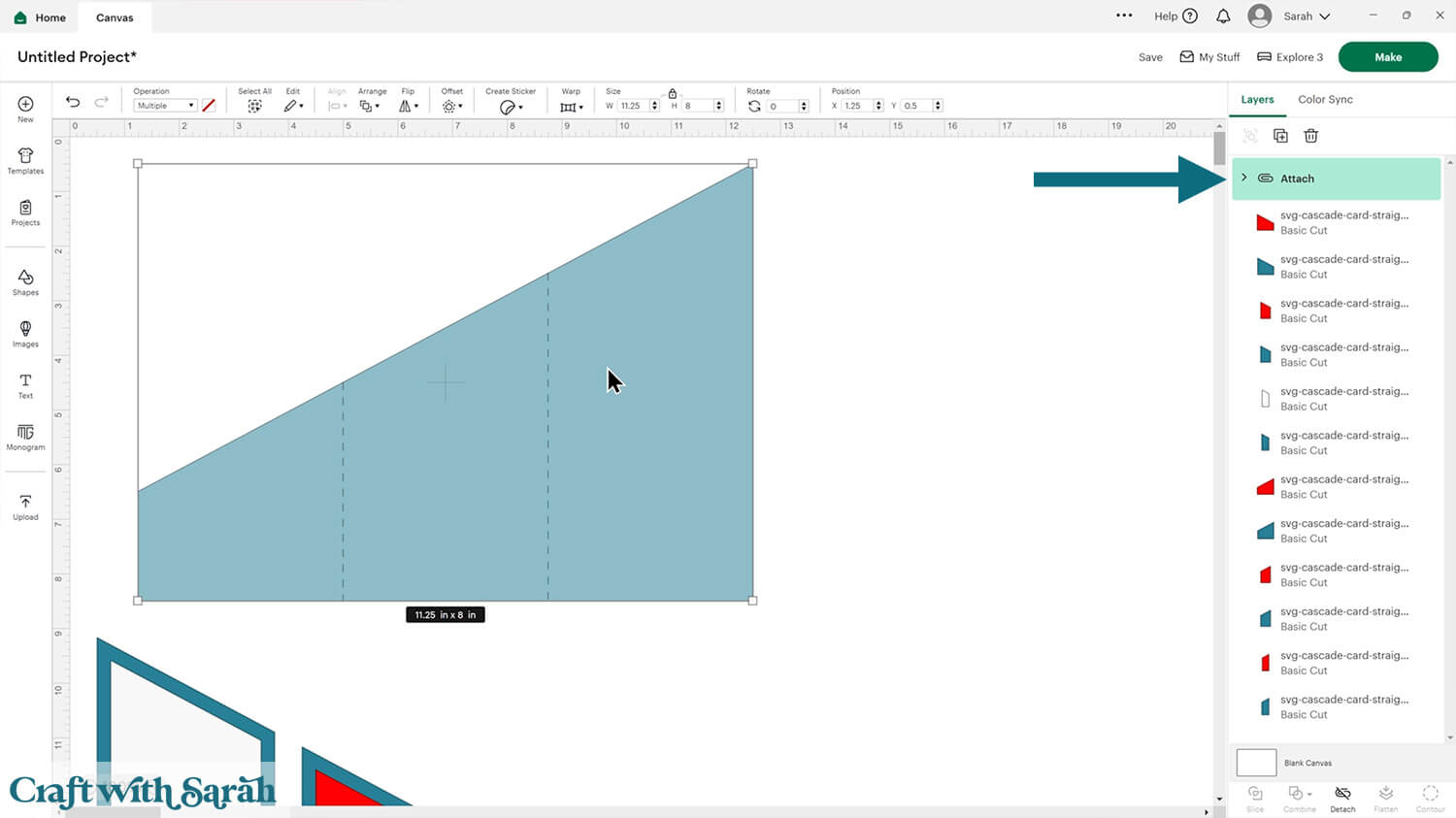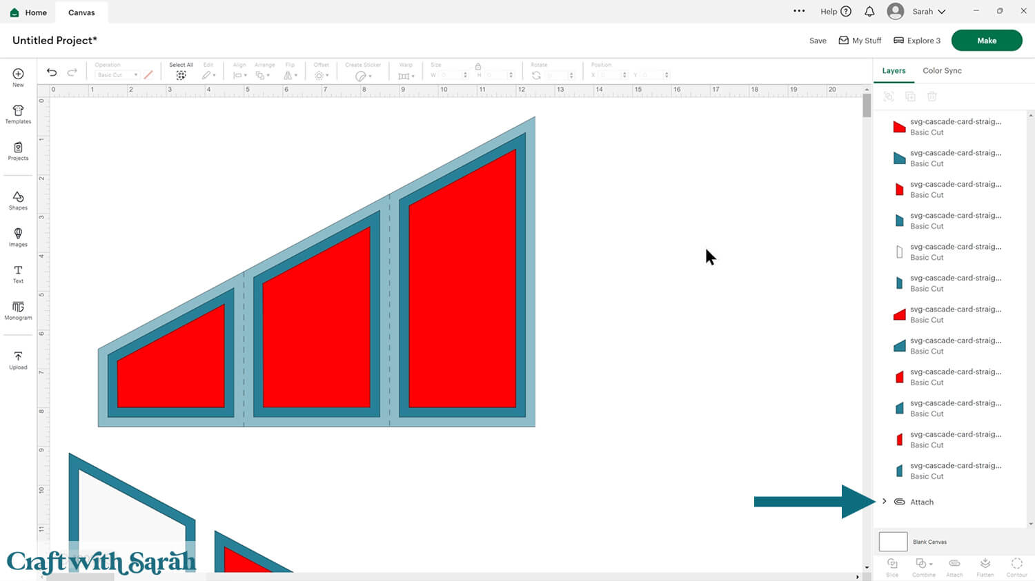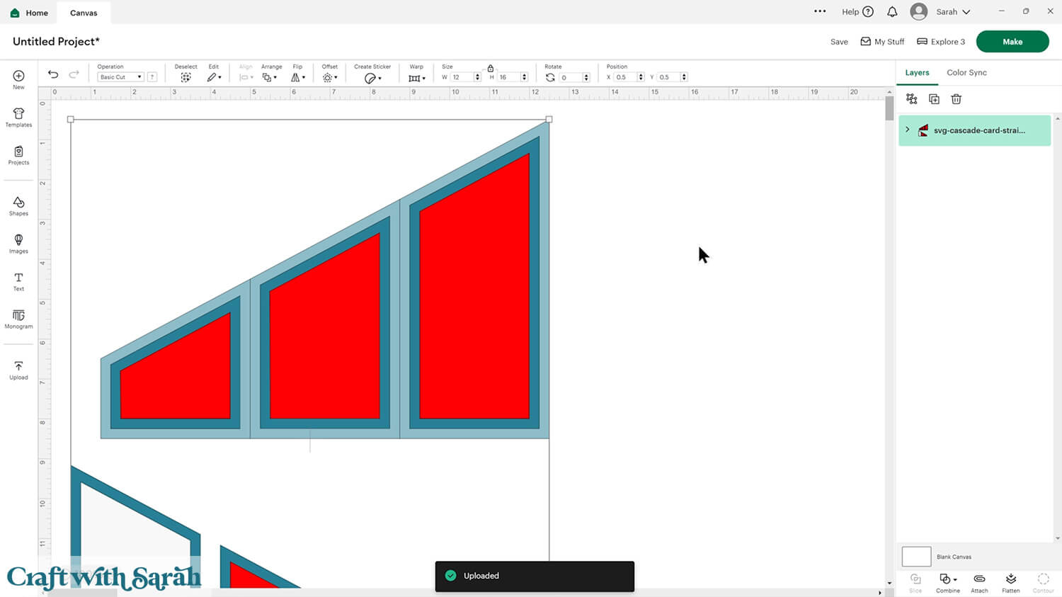 Cut the envelope. You can move the layers around in Design Space to fit them all onto one 12×12 sheet of card.