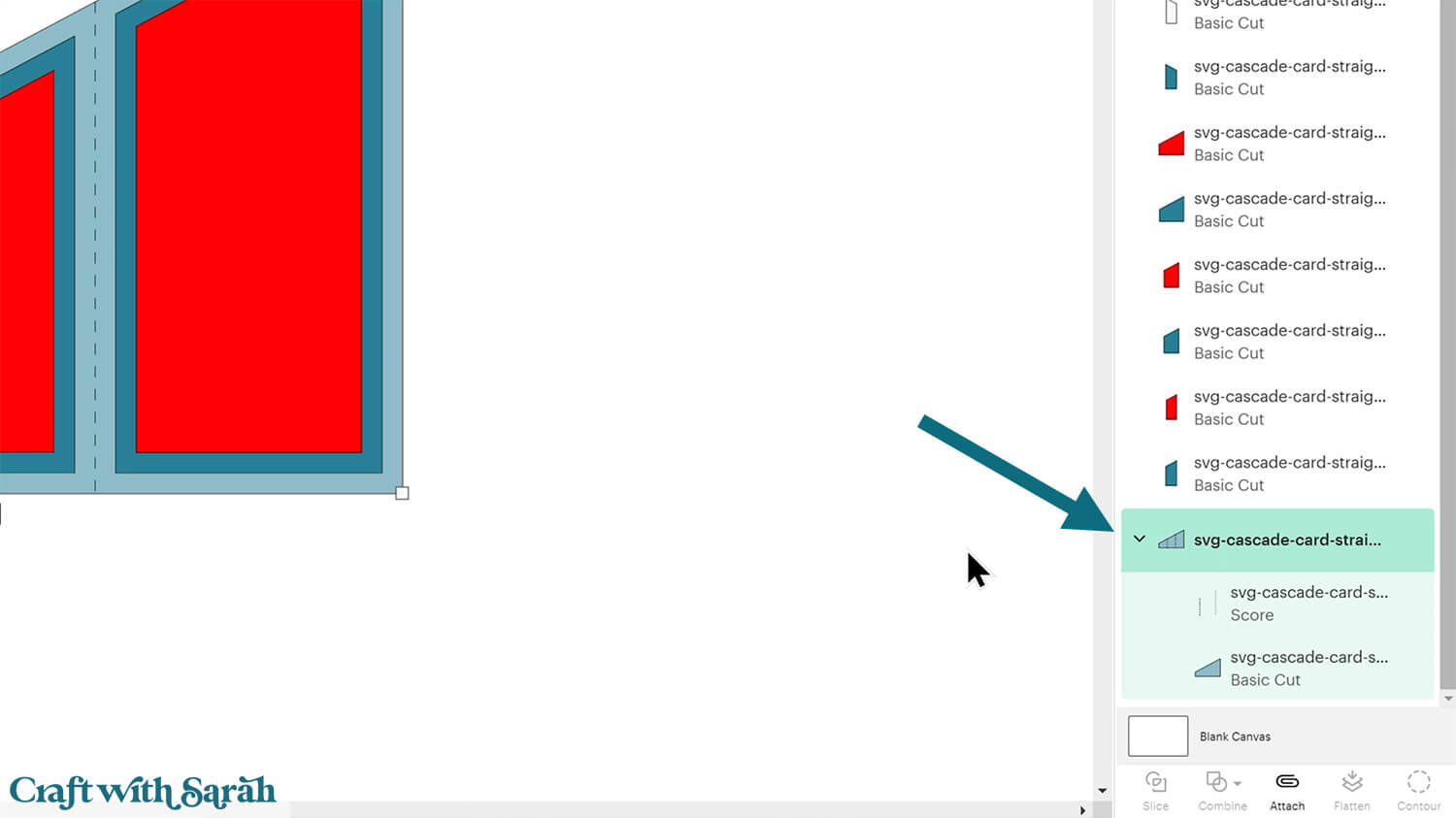 Select the score line layer and the base card, then press “Attach” at the bottom of the layers panel.