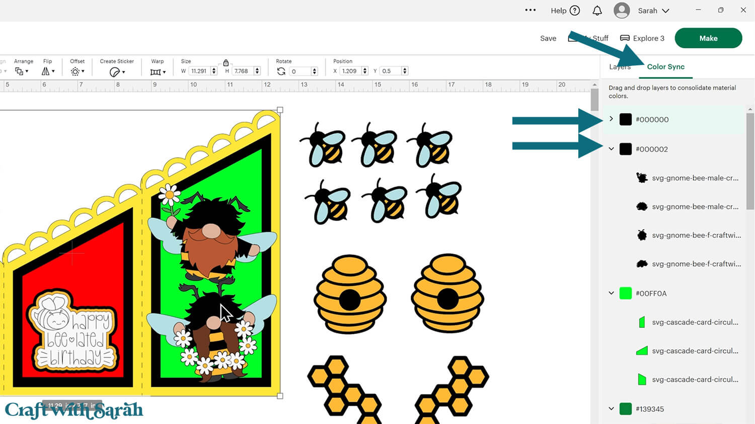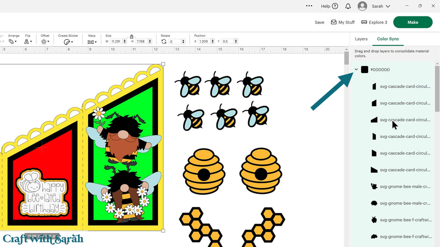To save space on your cardstock, you can move things around by clicking and dragging. Make sure when you’re moving things about that nothing overlaps because otherwise, it won’t cut out properly.