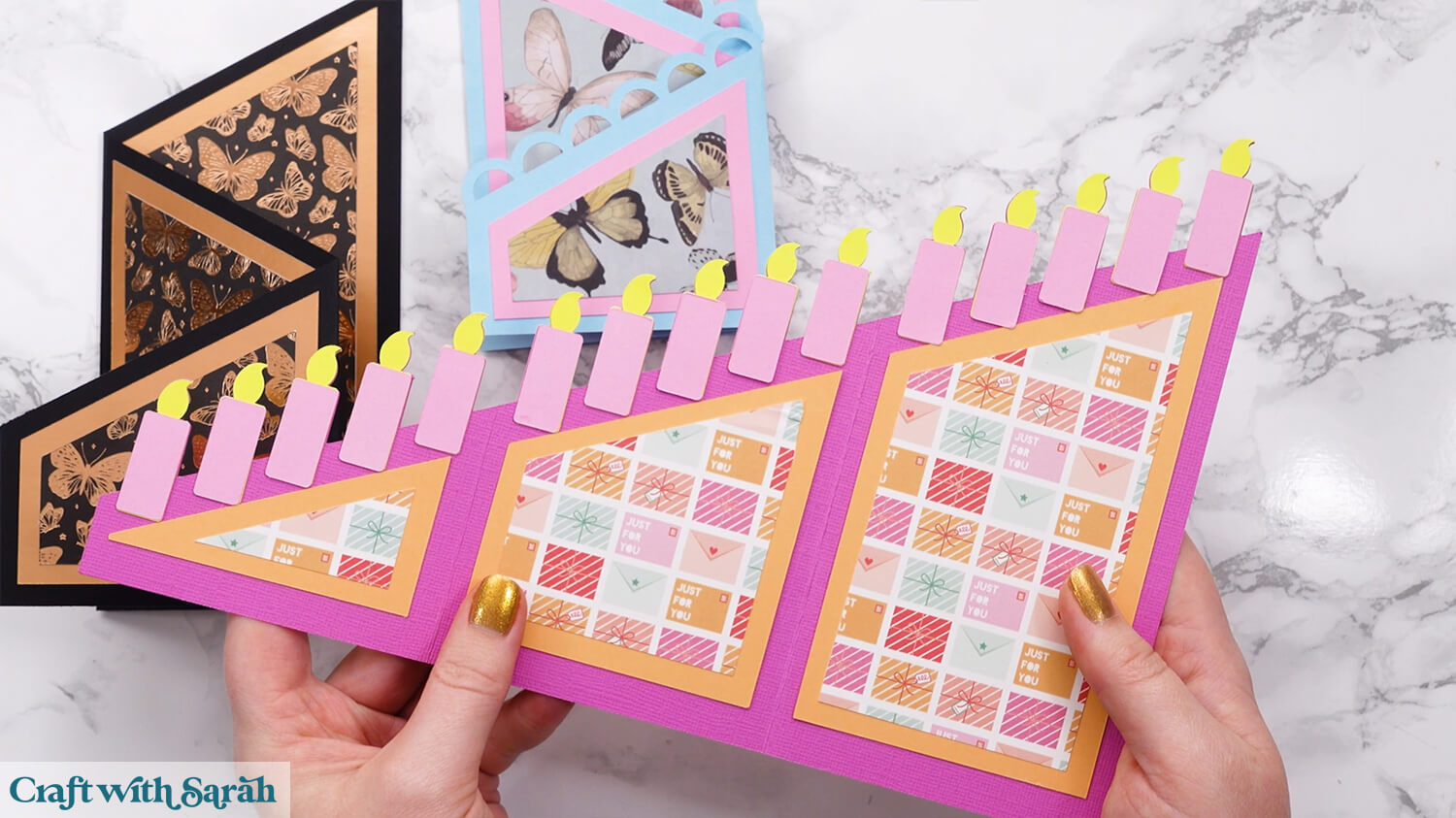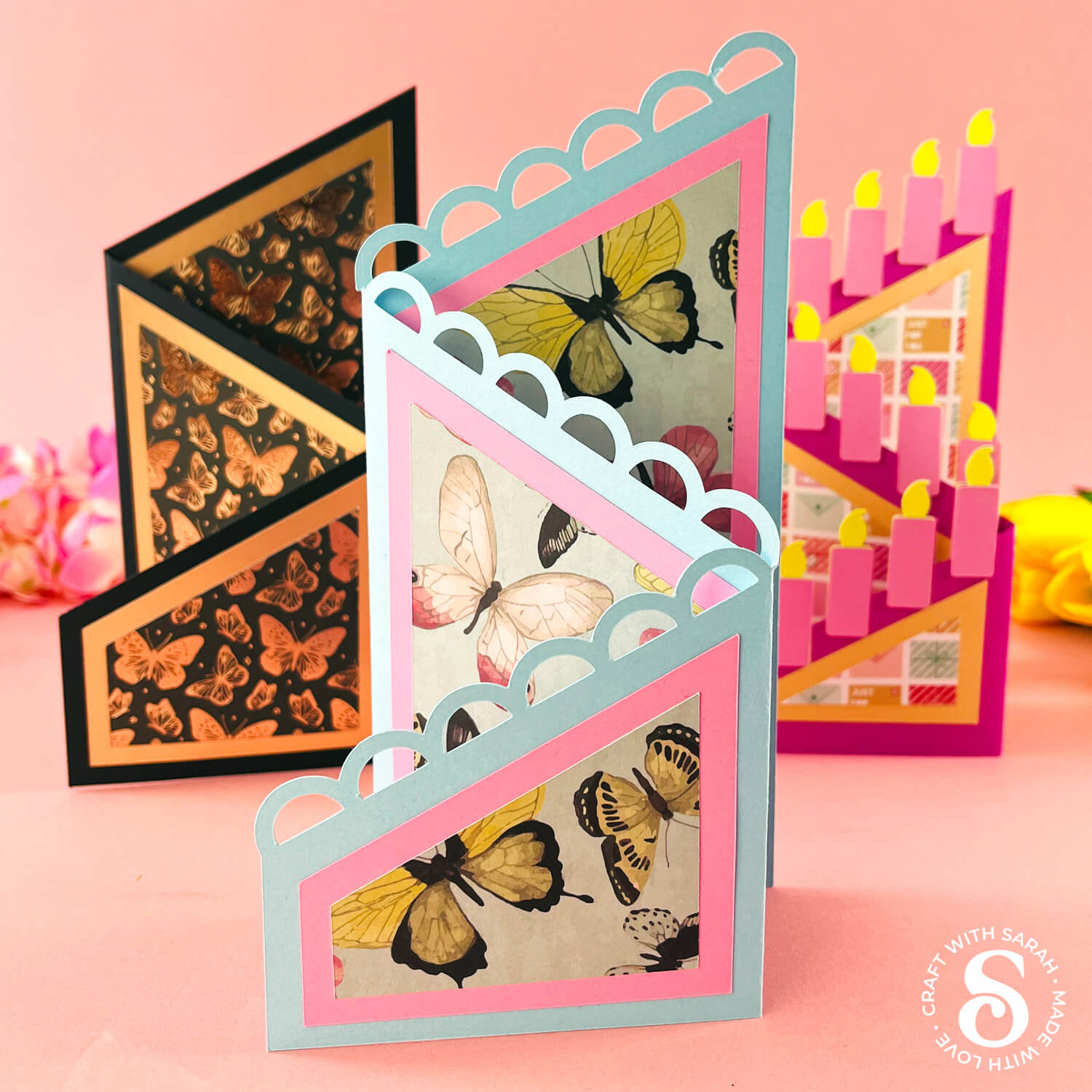 You’ll learn how to fold cardstock into three cascading panels and bring your card to life with one of our three exclusive templates: a classic straight-edge design, a sweet scalloped circle edge, and a playful birthday candle version that’s perfect for celebrations!