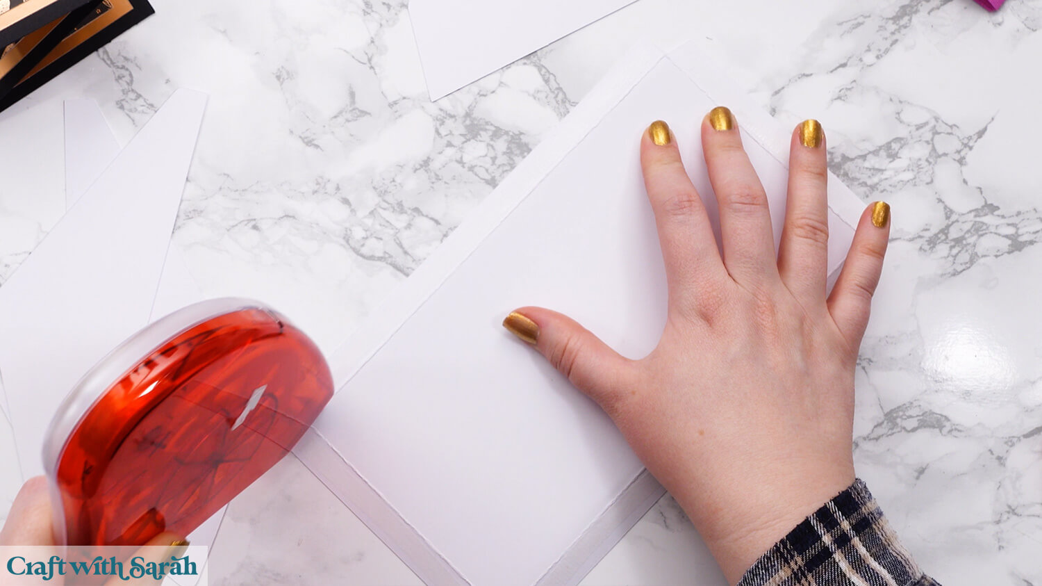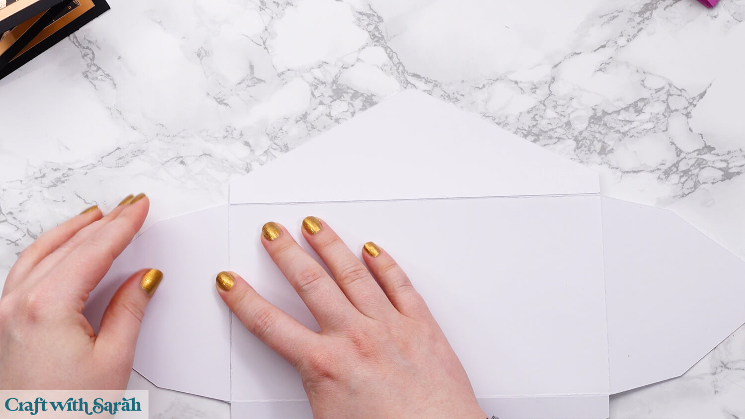 Turn the piece the other way up and add double sided tape or glue down all the tabs, up to the score lines.