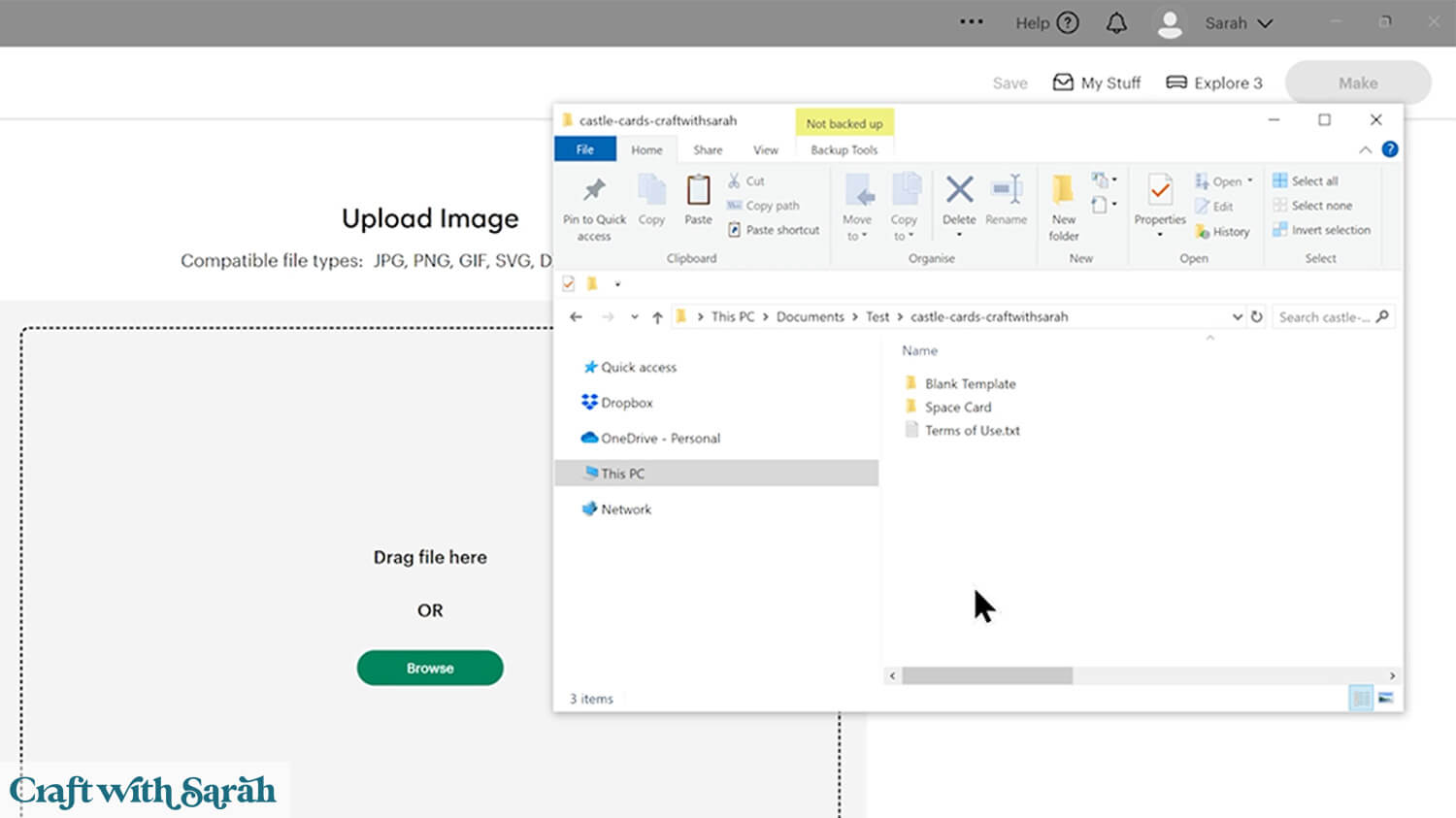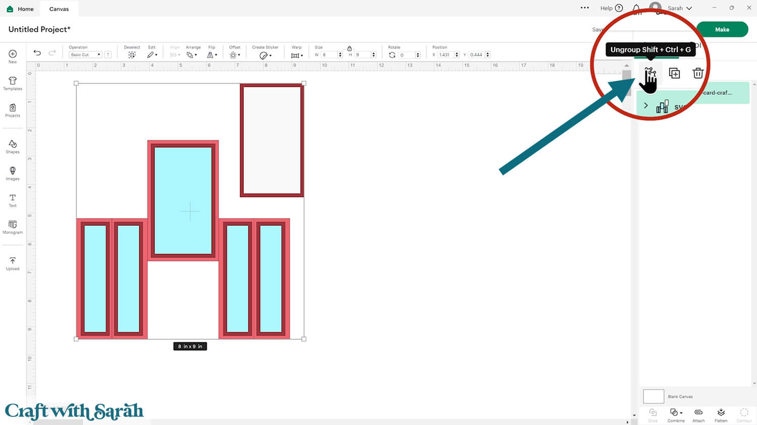 To save space on your cardstock, you can move things around by clicking and dragging. Make sure when you’re moving things about that nothing overlaps because otherwise, it won’t cut out properly.