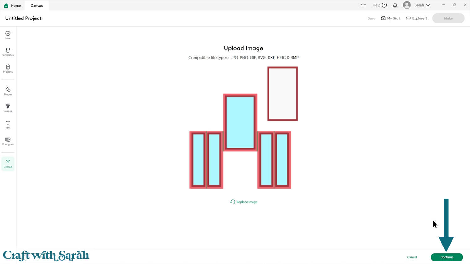 If you are using Cricut Design Space, start a new project and then click the “Upload” button on the left of the screen.