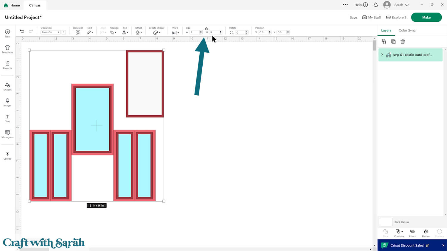If yours comes in differently, resize it to 8 x 9.