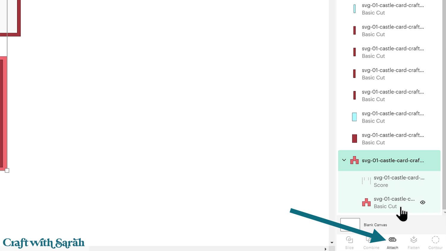 Select the score line layer and the base card, then press “Attach” at the bottom of the layers panel.