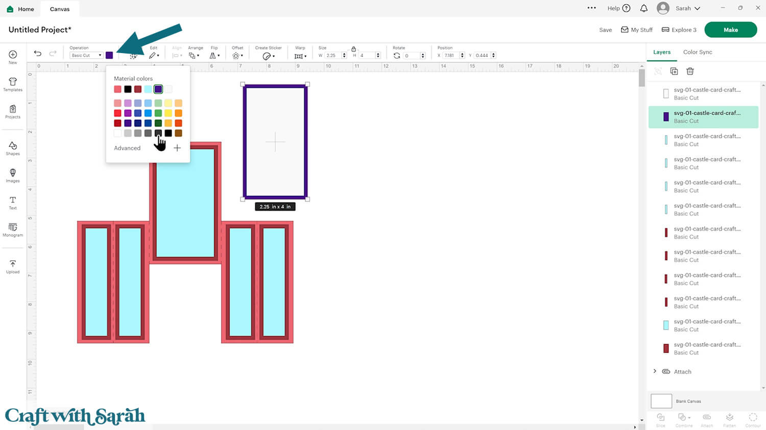 This is a good time to change the colours if you are planning on cutting them differently to what’s on the screen.