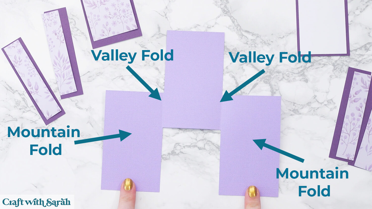 Valley fold the two score lines close to the middle of the card. This means that the “point” of the fold is at the bottom.