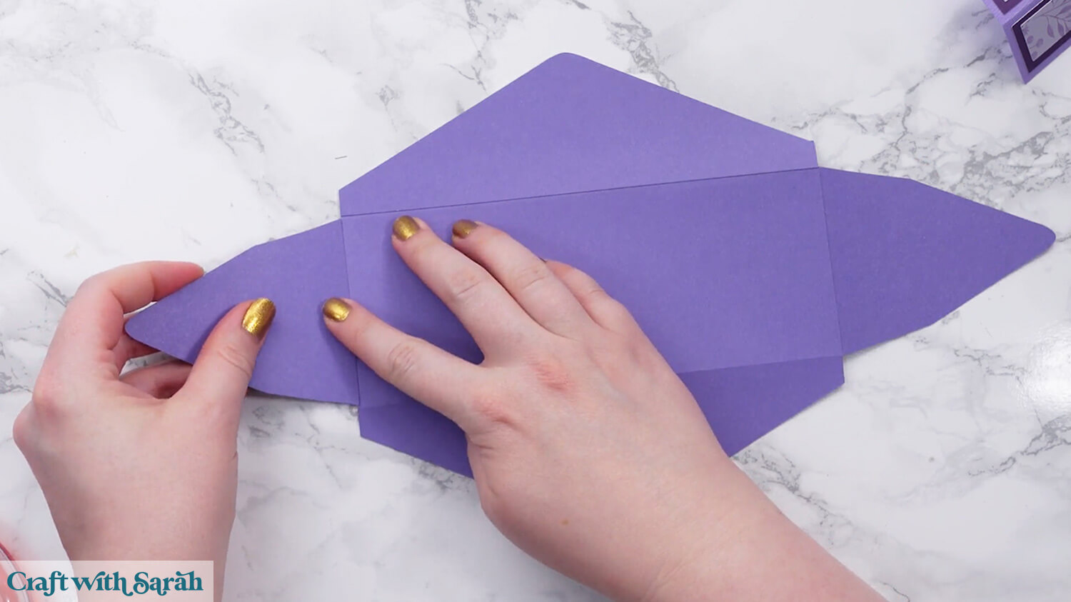 Mountain fold the two score lines along the edges. The “point” for these folds will be at the top.