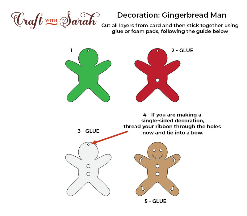 If you are making double-sided decorations then you do not need to thread your ribbon through the holes in the pieces of card. Instead, you can simply glue the ribbon in between the “front” and “back” decoration before you stick them together. I will show how to do that a bit further down this page.