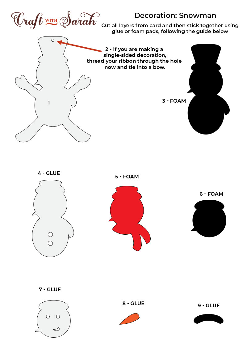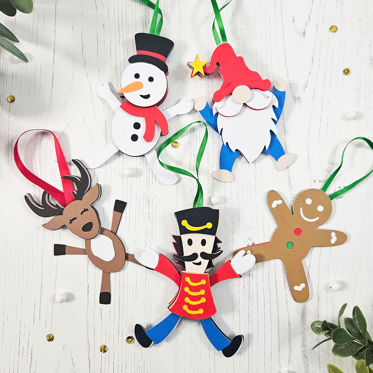 After sticking all the pieces of card together, you’ll have a fabulous collection of decorations ready to be hung on your Christmas tree.