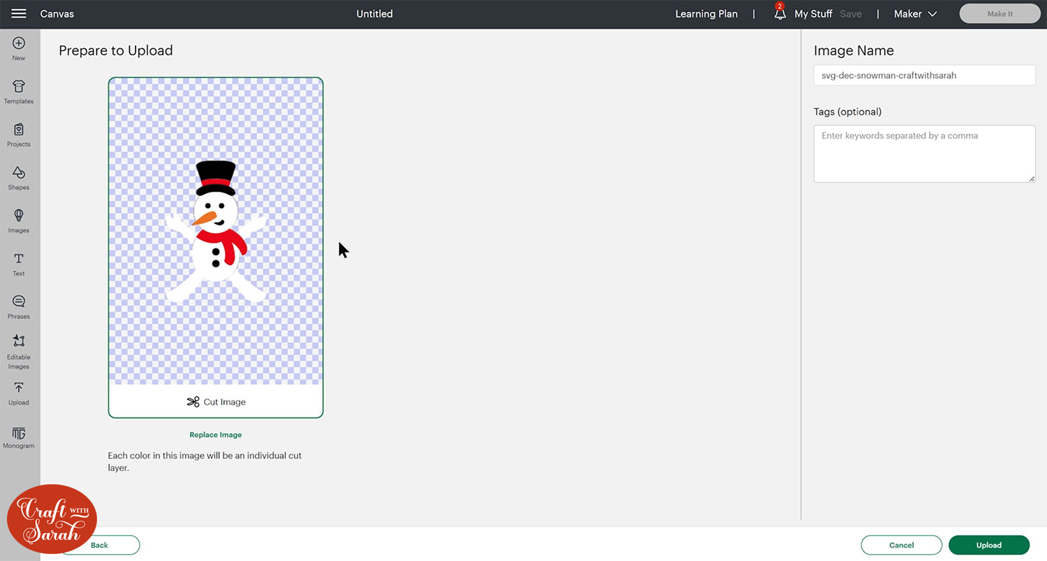 All the layers should appear “on top of each other” as per the image above. If you see all the layers next to each other instead, that means you’ve accidentally uploaded the wrong file type. If that’s the case, click “Cancel” on the bottom-right of the screen and try again.
