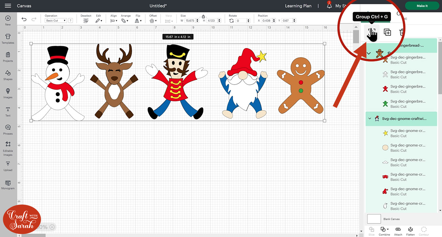 Press “Select All” to grab all the decorations, then click the “Group” button at the top of the layers panel.
