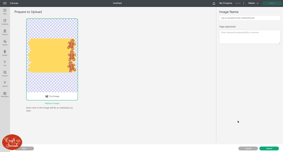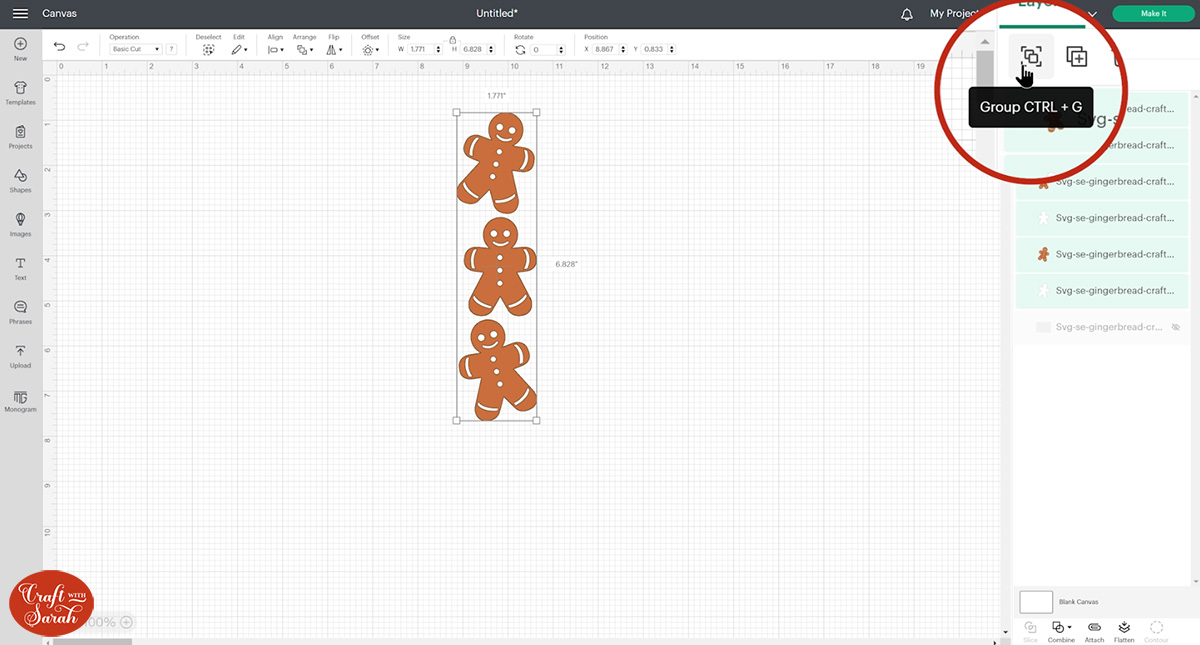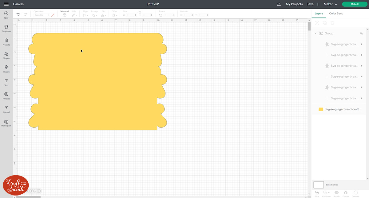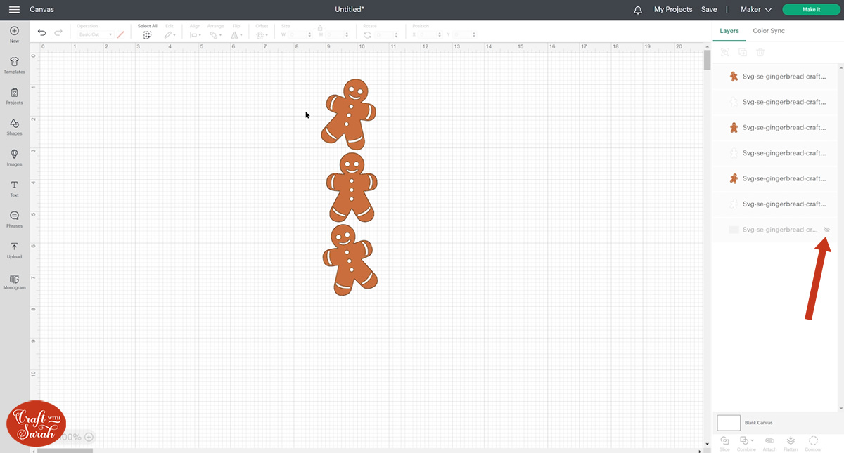 I’m using the gingerbread man design for this tutorial which is called svg-se-gingerbread-craftwithsarah.svg