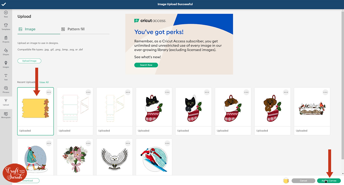 After uploading, the design will show in your “Recently Uploaded Images”.