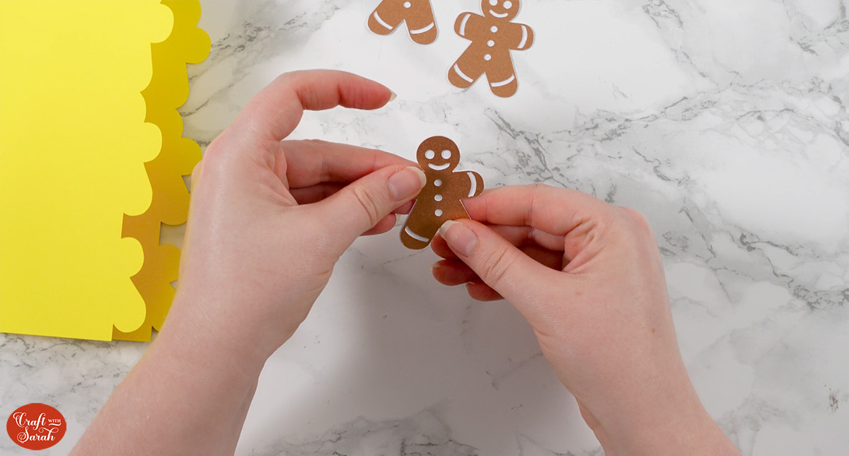 For instance, I need to glue the brown gingerbread man layers onto the white layers.