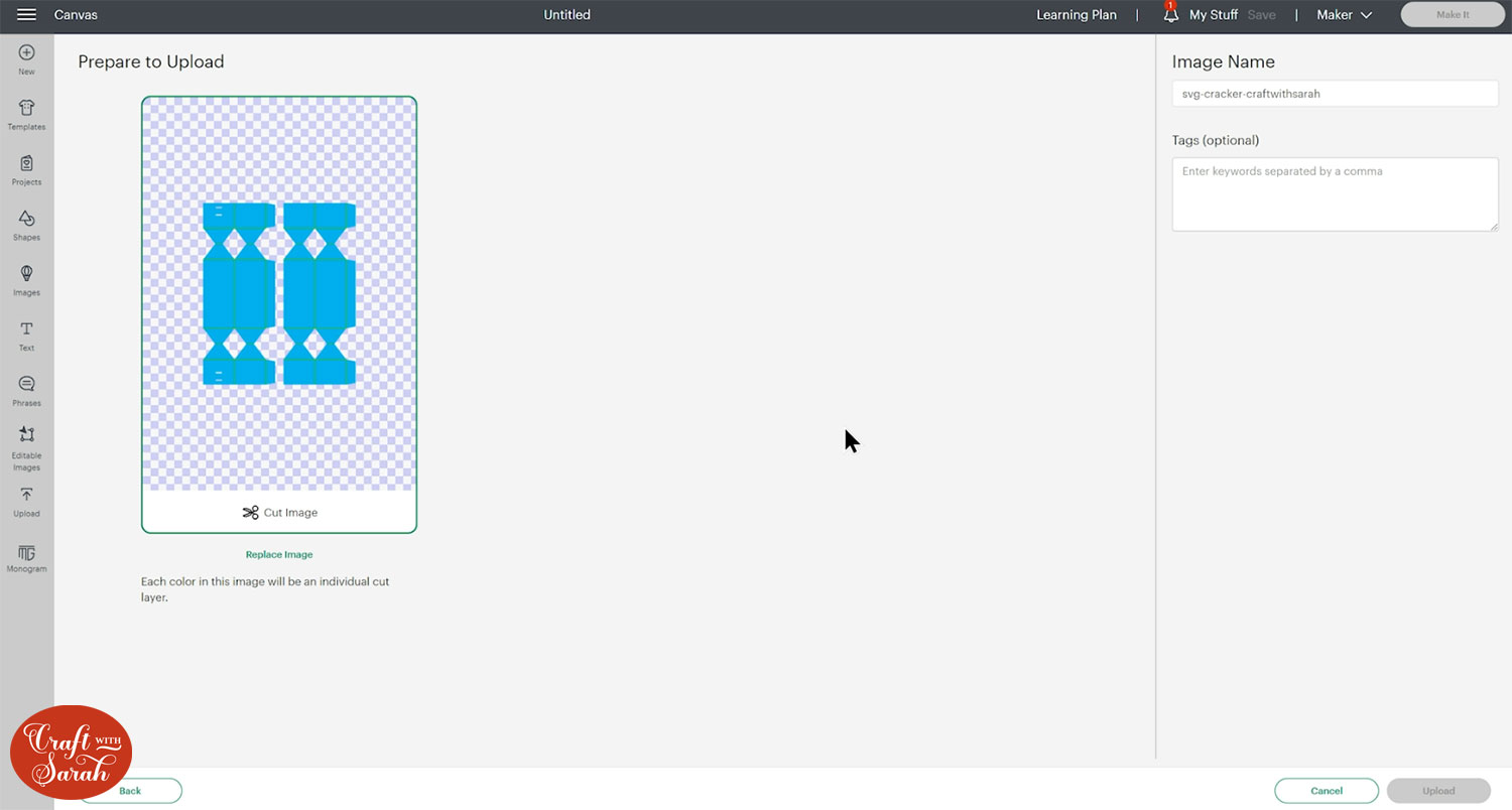 The file to upload for Cricut Design Space is the one called svg-cracker-craftwithsarah.svg