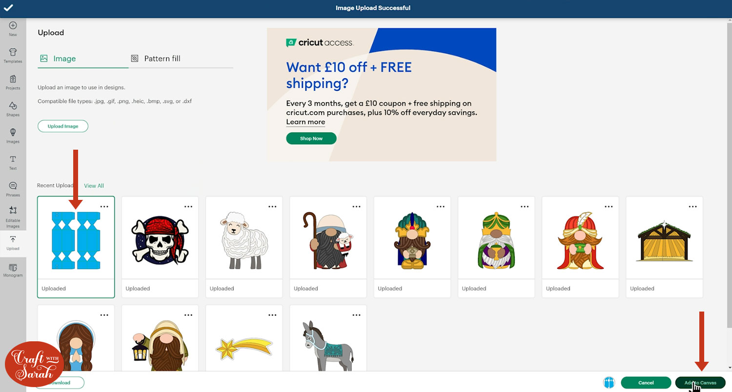 After uploading, the design will show in your “Recently Uploaded Images”.