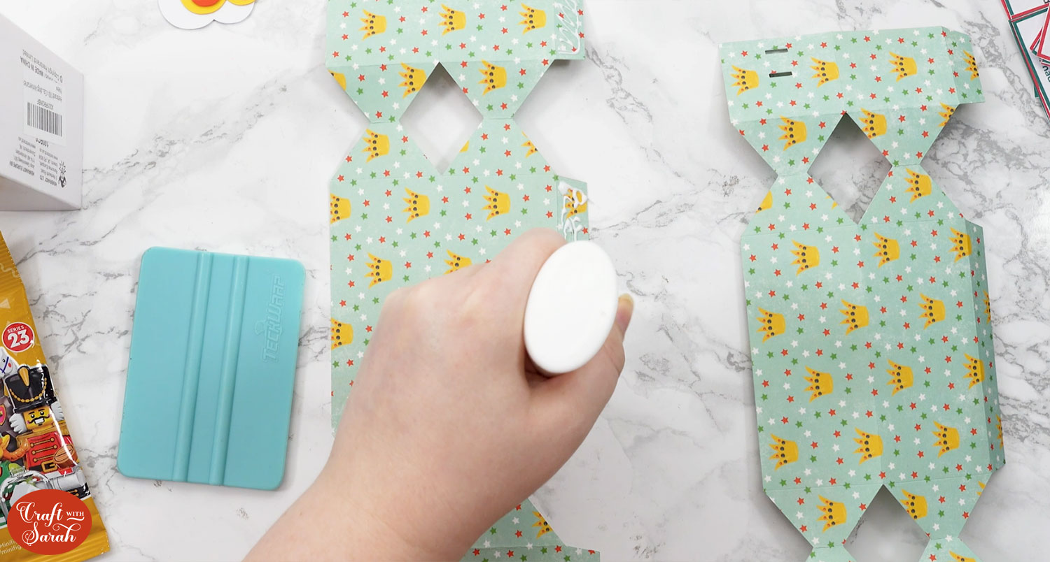 If you are adding a name to the cracker, use glue or foam squares to stick the pieces together.