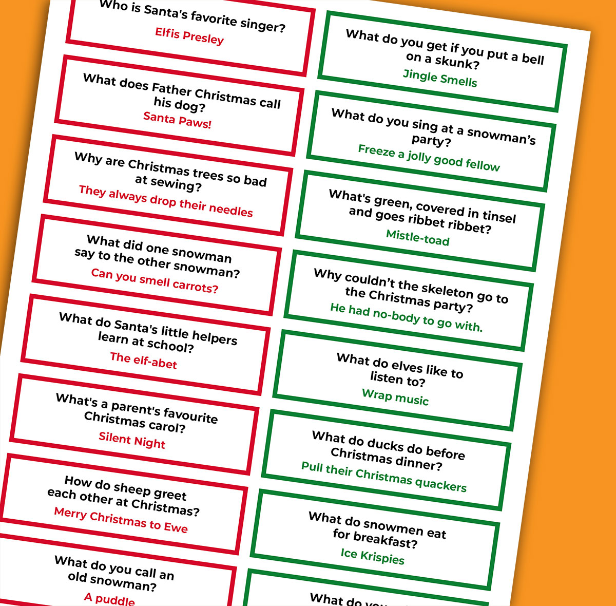 If you have a printer at home, print off the sheet of jokes included in the download folder. Every cracker should have a terrible joke inside!