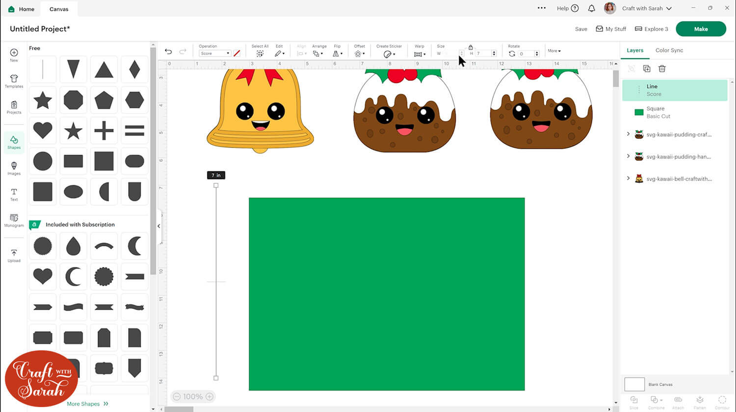 Click “Shapes” and insert a Score Line. Make it 7 inches tall.