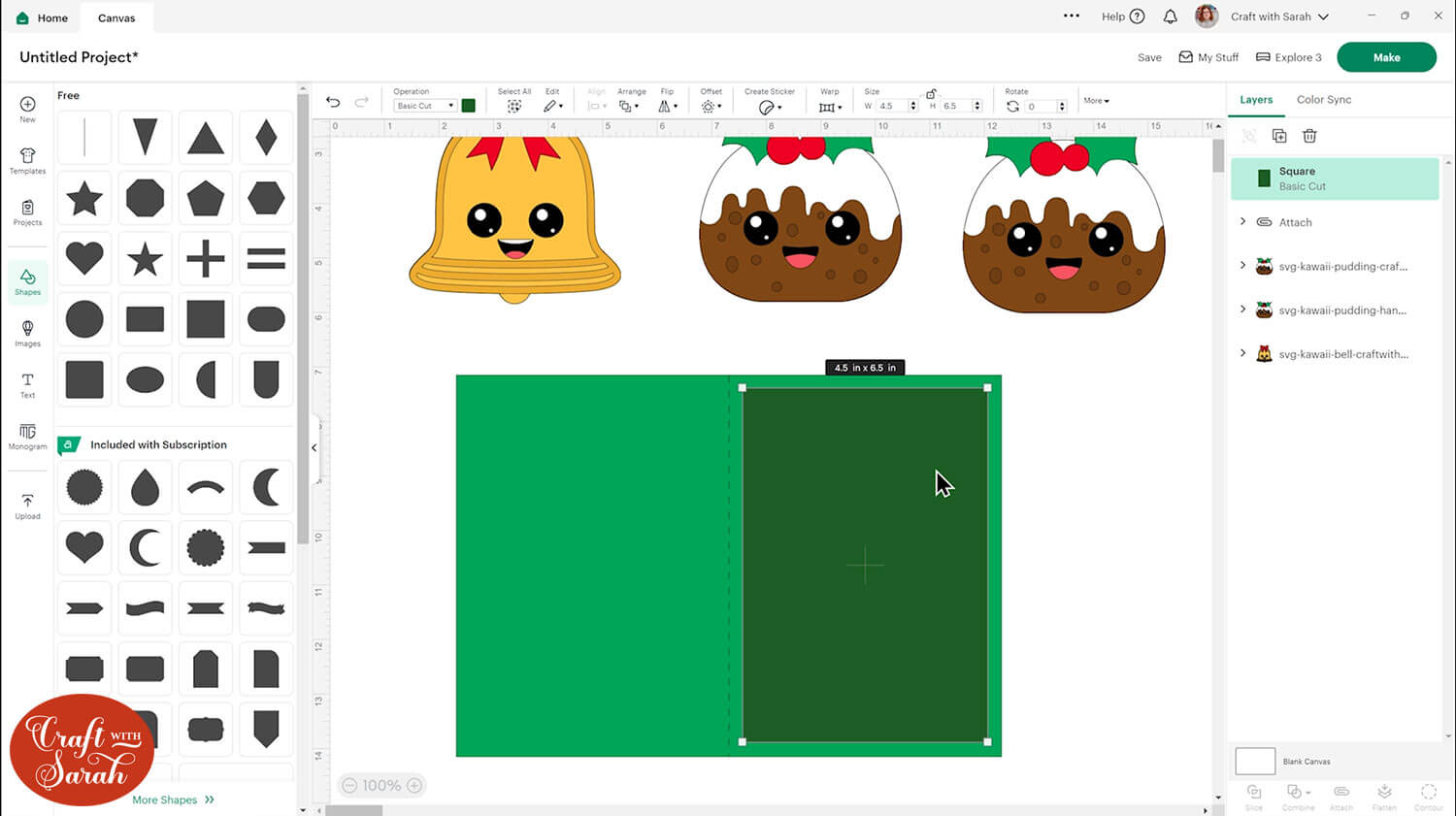 I created a rectangle at 6.5 inches tall and 4.5 inches wide and made it a darker green colour.