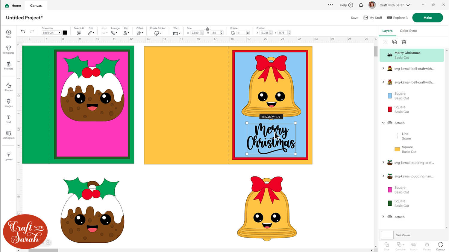 To save space on your cardstock, you can move things around by clicking and dragging. Make sure when you’re moving things about that nothing overlaps because otherwise, it won’t cut out properly.