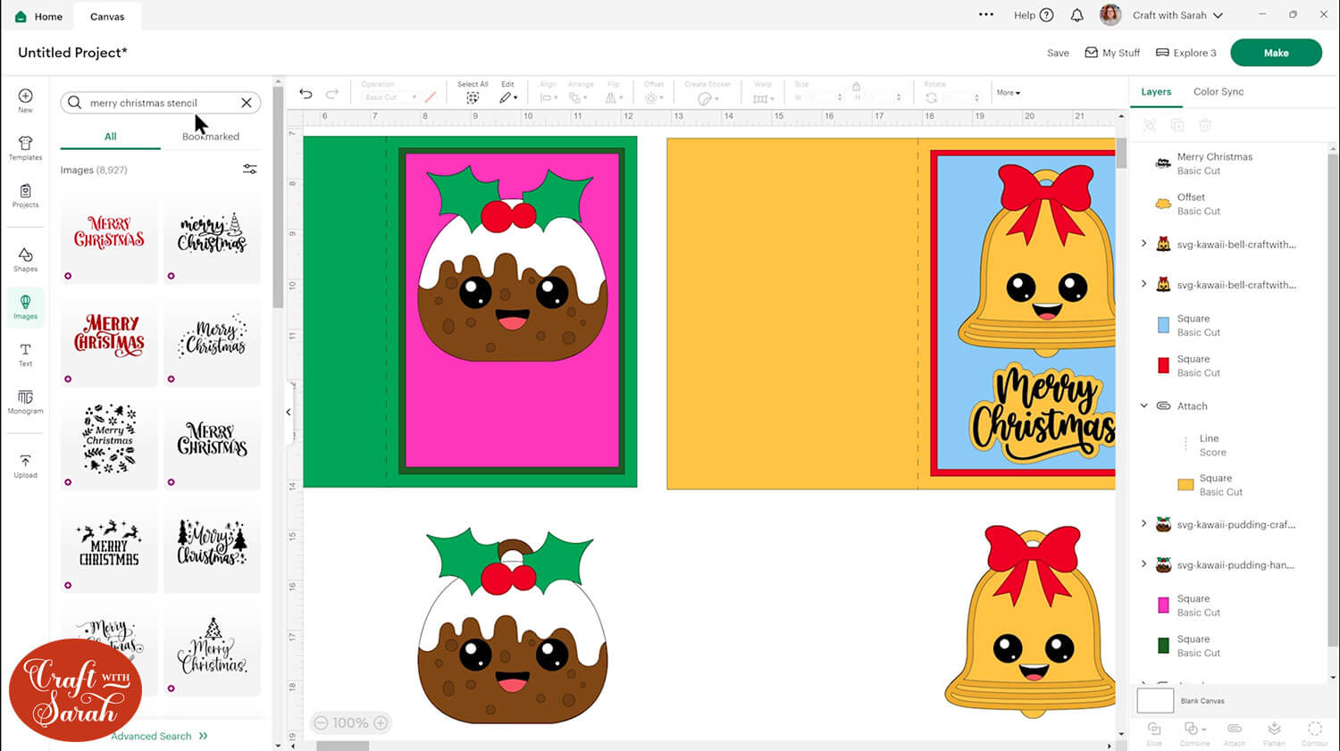 An alternative way to add a sentiment is to search under Images for “Merry Christmas stencil”.