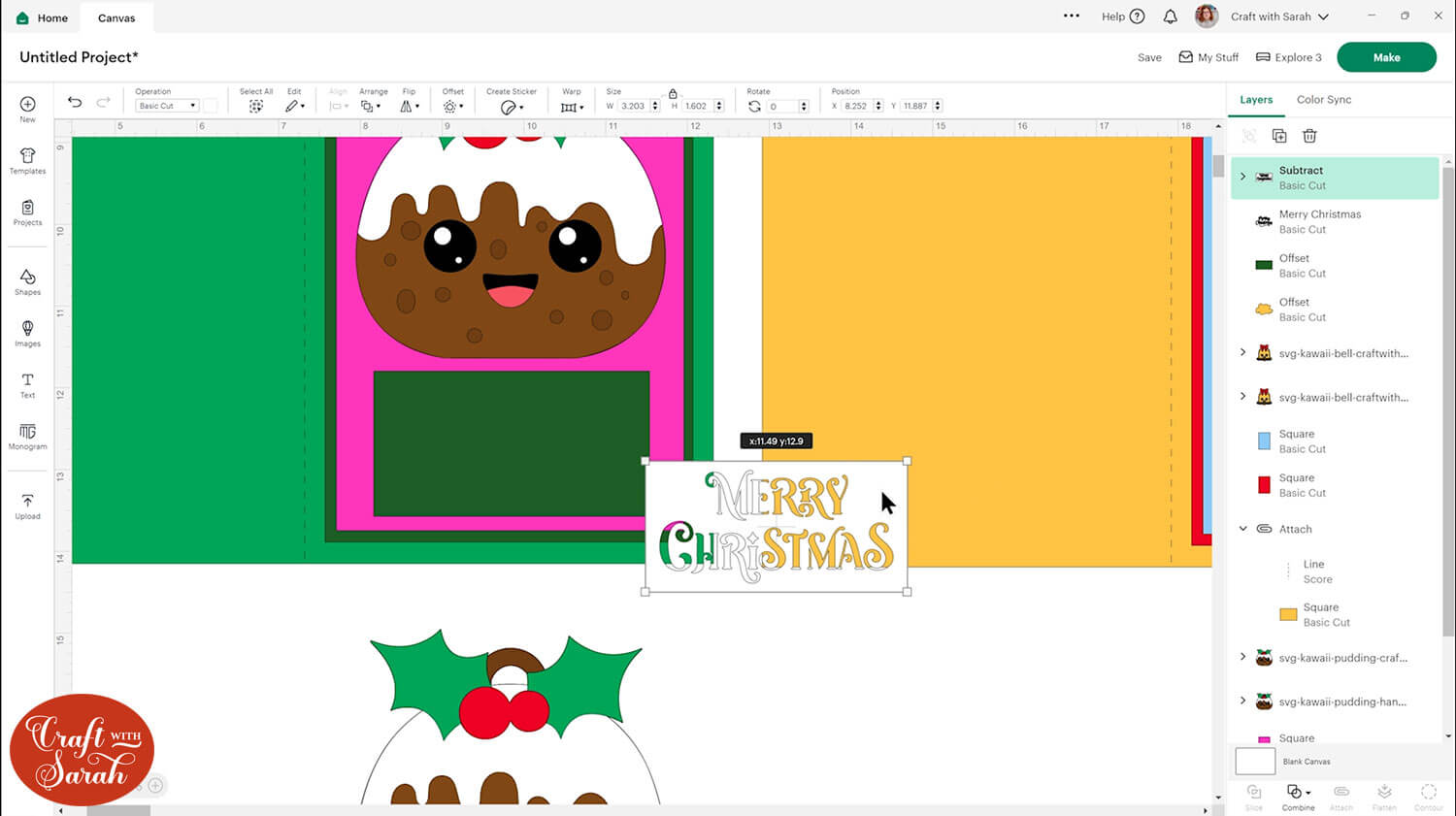 Select the “Merry Christmas” image and the white rectangle and press Align > Center to put the wording exactly in the middle.