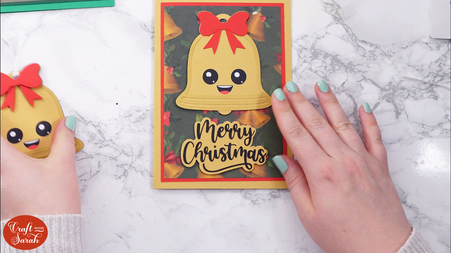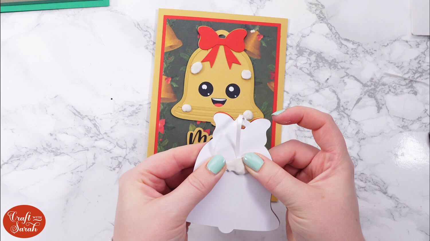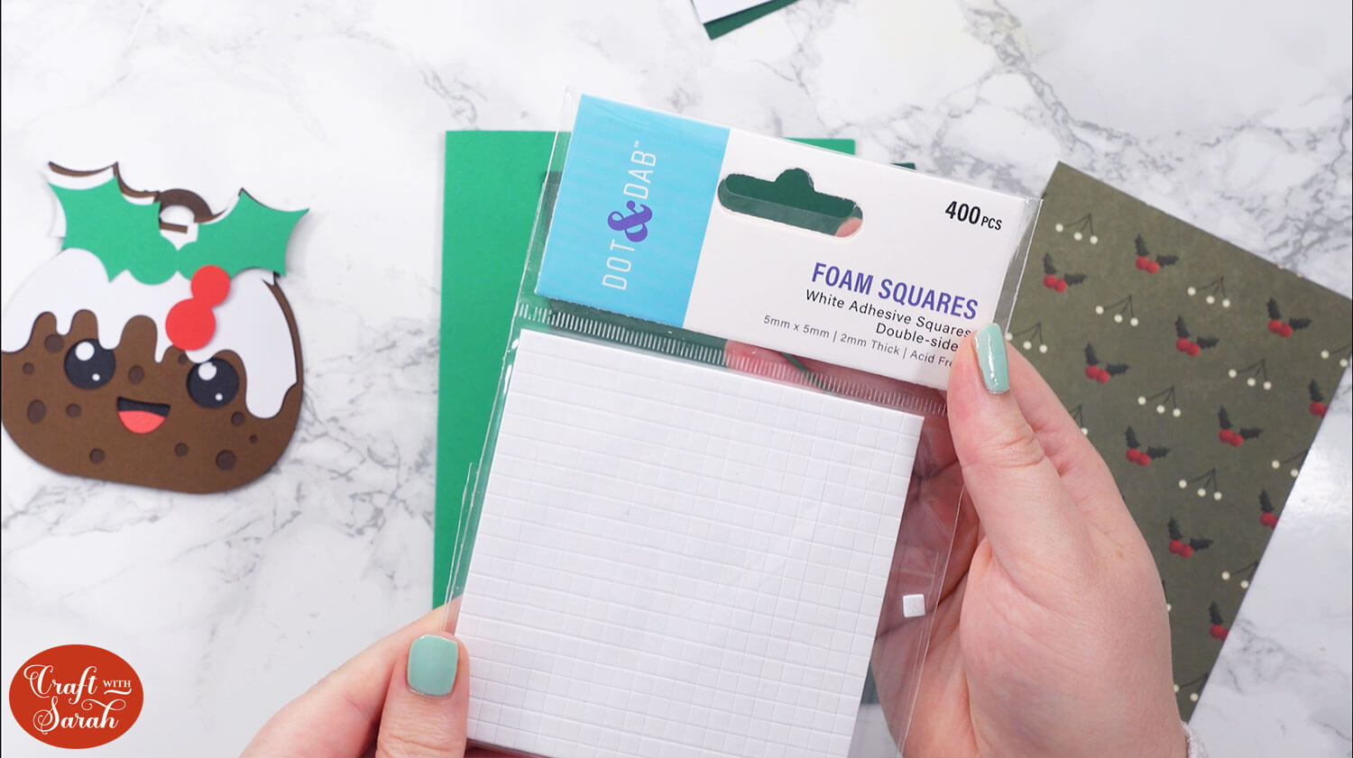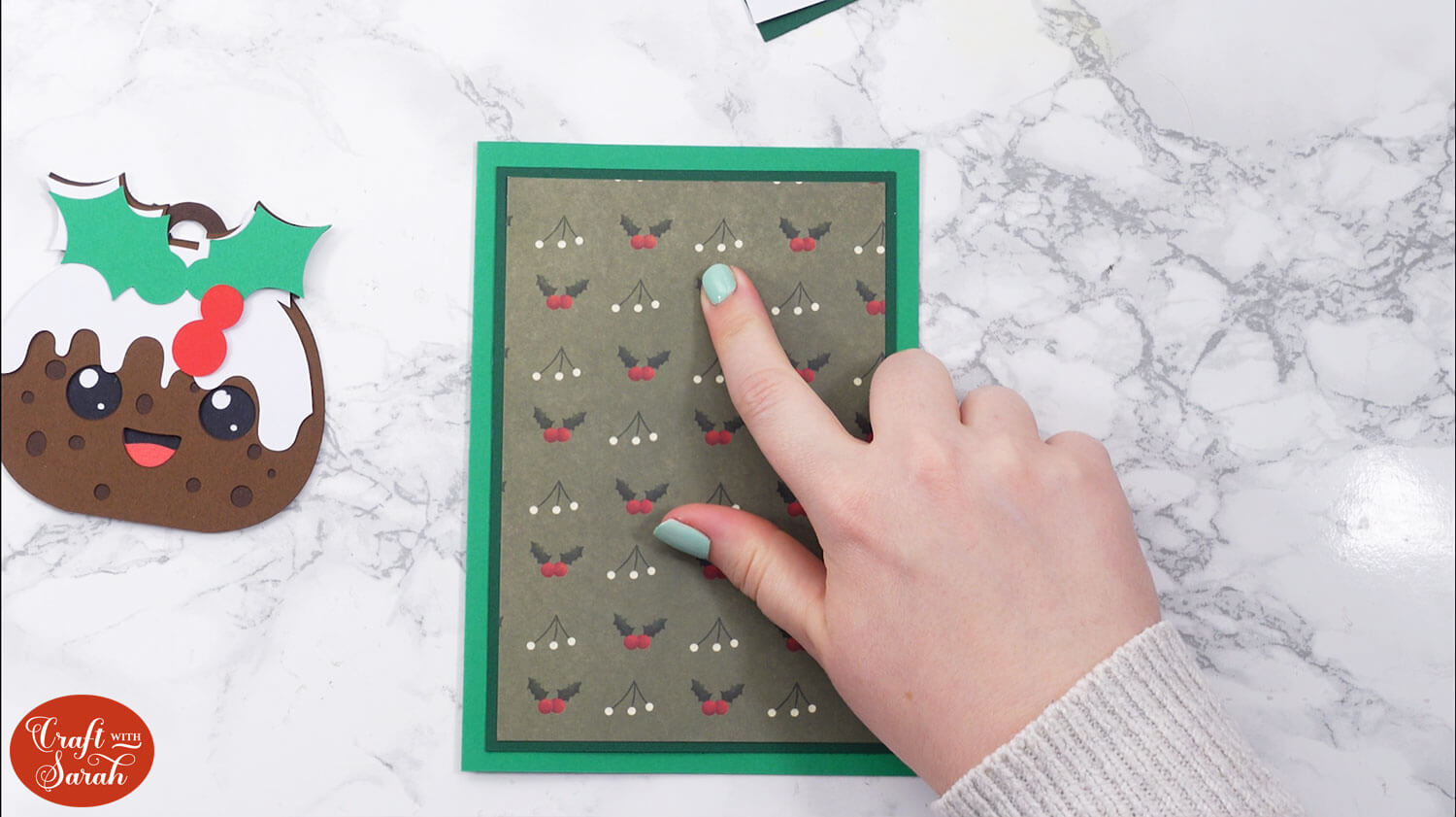 Make sure both Christmas puddings are the same width and height so that the removable ornament will fully cover the one that’s stuck on the card.
