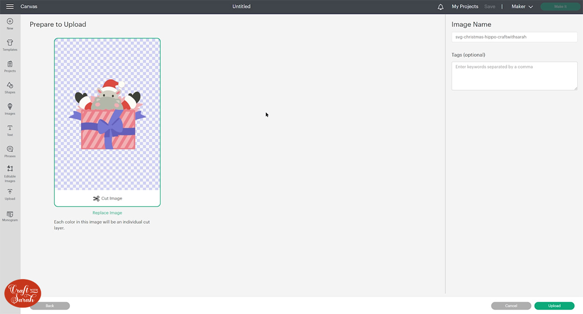 All the layers should appear “on top of each other” as per the image above. If you see all the layers next to each other instead, that means you’ve accidentally uploaded the wrong file type. If that’s the case, click “Cancel” on the bottom-right of the screen and try again.